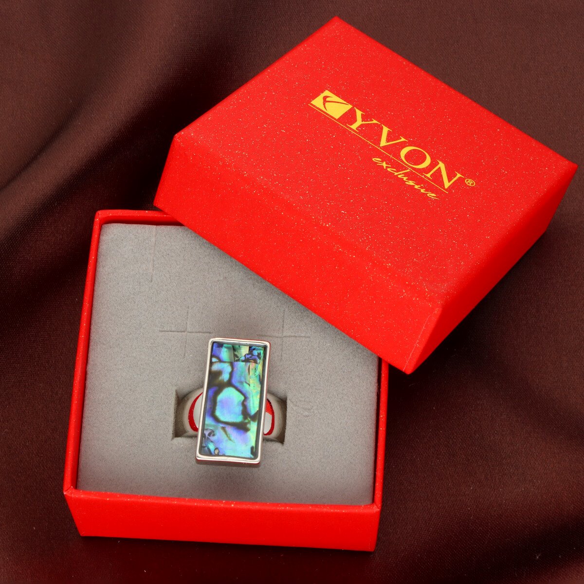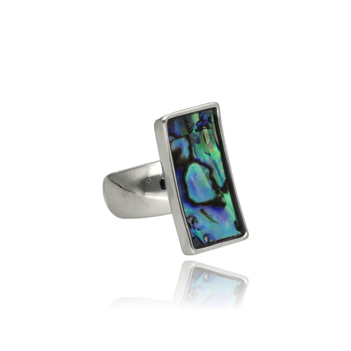 Elegancki pierścionek / damski sygnet wykonany z metalu antyalergicznego – bezpieczny nawet dla wrażliwej skóry, ozdobiony naturalną muszlą Abalone.