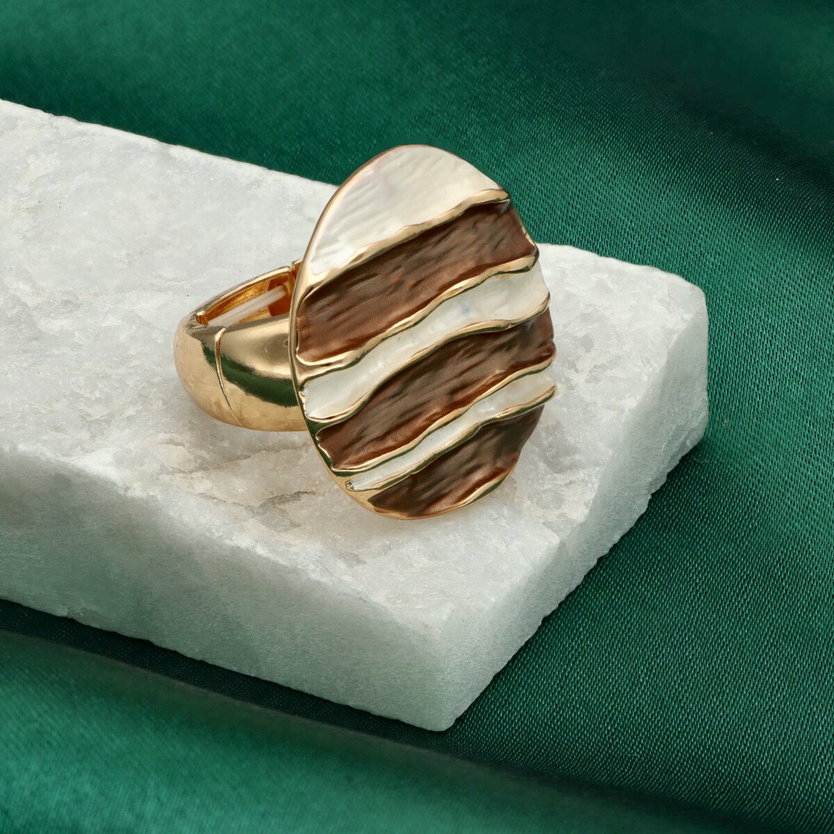 Pierścionek z kolekcji YVON BIŻUTERIA ARTYSTYCZNA, wykonany z metalu hipoalergicznego. Zdobiony emaliowanym motywem o artystycznym charakterze, dopracowany w każdym detalu. Dzięki elastycznej konstrukcji pierścionek doskonale dopasowuje się do palca i zapewnia wygodę noszenia. Całość zapakowana w eleganckie pudełko prezentowe YVON. Szukaj do kompletu naszyjnika, kolczyków i bransolety z tym samym indeksem numerycznym.