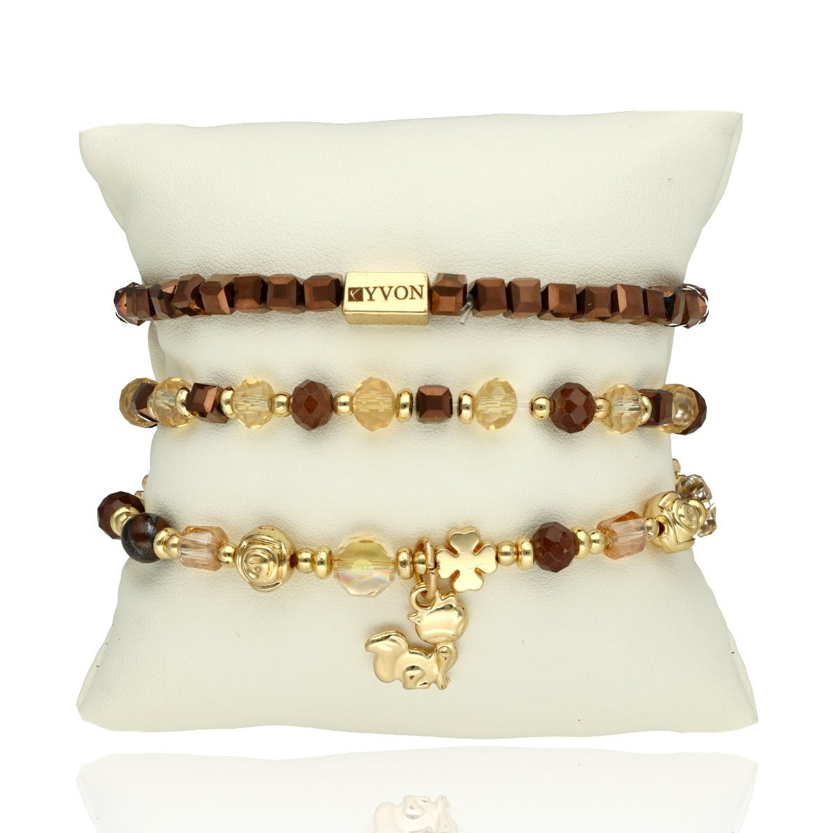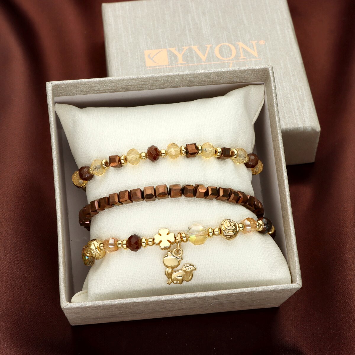 Zestaw trzech uroczych bransoletek, który łączy w sobie klasyczną elegancję i najwyższą jakość wykonania. Każdy element został starannie dobrany – od antyalergicznego mosiądzu, aż po misternie fasetowane koraliki z kryształu górskiego. Subtelne połączenie tych materiałów tworzy niepowtarzalny, ponadczasowy dodatek. Bransoletki zapakowane są w eleganckie pudełeczko z miękką poduszeczką, co sprawia, że zestaw doskonale nadaje się na prezent.