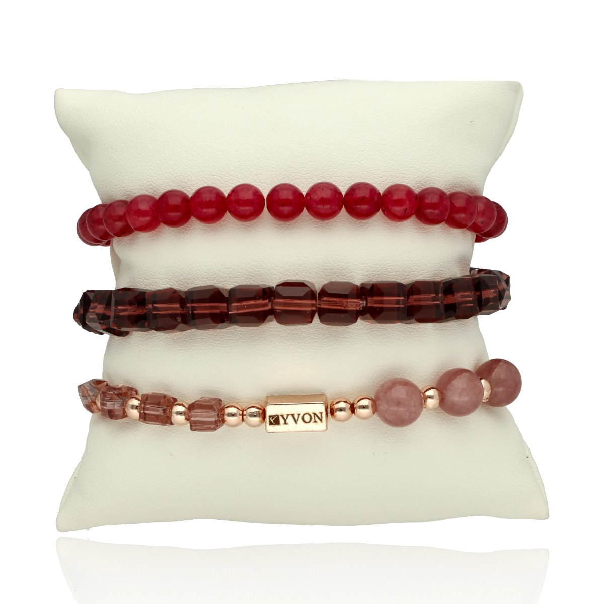 Zestaw trzech bransoletek z KAMIENIAMI NATURALNYMI (GRANAT), który łączy w sobie klasyczną elegancję i najwyższą jakość wykonania. Każdy element został starannie dobrany – od antyalergicznego mosiądzu, przez elementy z kamieni, aż po misternie fasetowane koraliki z kryształu górskiego. Subtelne połączenie tych materiałów tworzy niepowtarzalny, ponadczasowy dodatek. Bransoletki zapakowane są w eleganckie pudełeczko z miękką poduszeczką, co sprawia, że zestaw doskonale nadaje się na prezent.