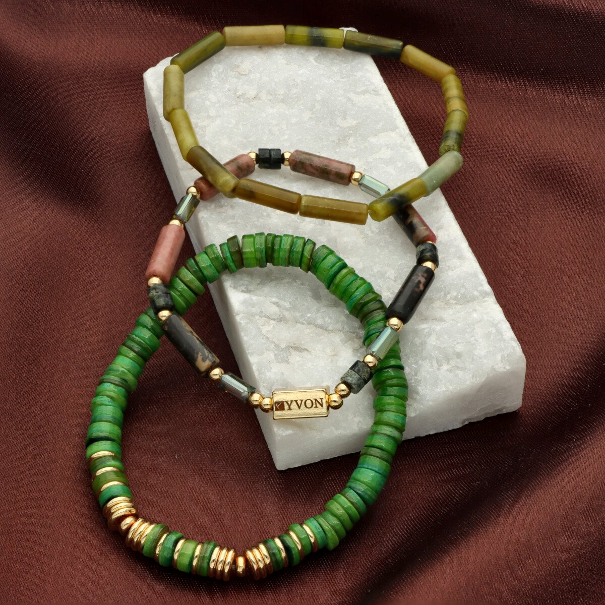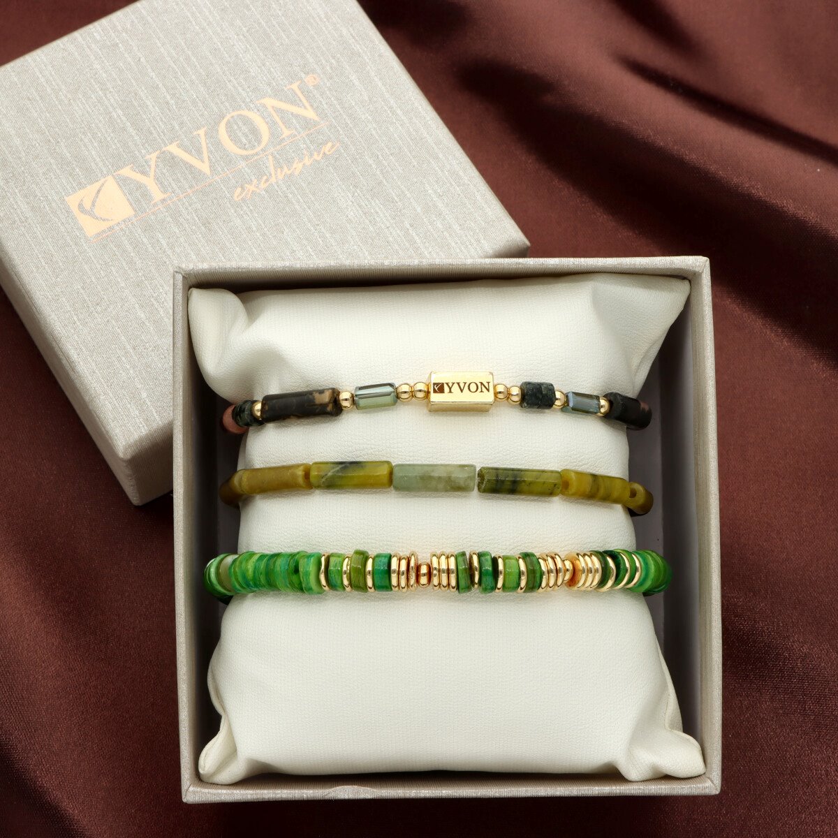 Zestaw trzech bransoletek z KAMIENIAMI NATURALNYMI (rubin w fuchsycie, awenturyn zielony), który łączy w sobie klasyczną elegancję i najwyższą jakość wykonania. Każdy element został starannie dobrany – od antyalergicznego mosiądzu, przez elementy z kamieni, aż po misternie fasetowane koraliki z kryształu górskiego. Subtelne połączenie tych materiałów tworzy niepowtarzalny, ponadczasowy dodatek. Bransoletki zapakowane są w eleganckie pudełeczko z miękką poduszeczką, co sprawia, że zestaw doskonale nadaje się na prezent.