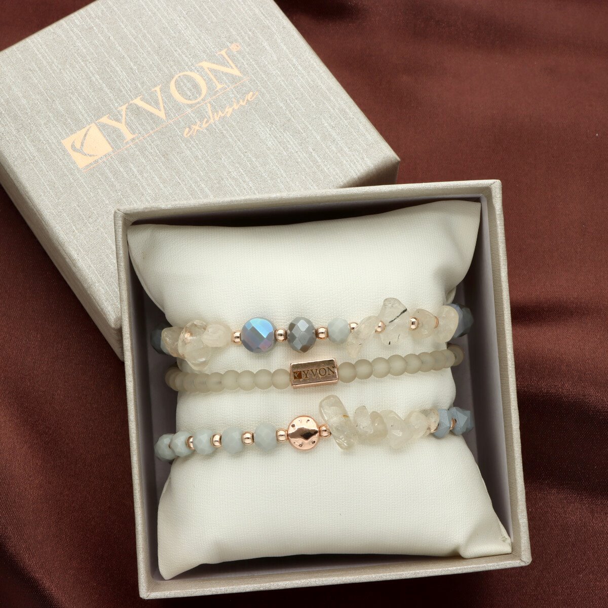 Zestaw trzech bransoletek z KAMIENIAMI NATURALNYMI (jaspis brązowy), który łączy w sobie klasyczną elegancję i najwyższą jakość wykonania. Każdy element został starannie dobrany – od antyalergicznego mosiądzu, przez elementy z kamieni, aż po misternie fasetowane koraliki z kryształu górskiego. Subtelne połączenie tych materiałów tworzy niepowtarzalny, ponadczasowy dodatek. Bransoletki zapakowane są w eleganckie pudełeczko z miękką poduszeczką, co sprawia, że zestaw doskonale nadaje się na prezent.