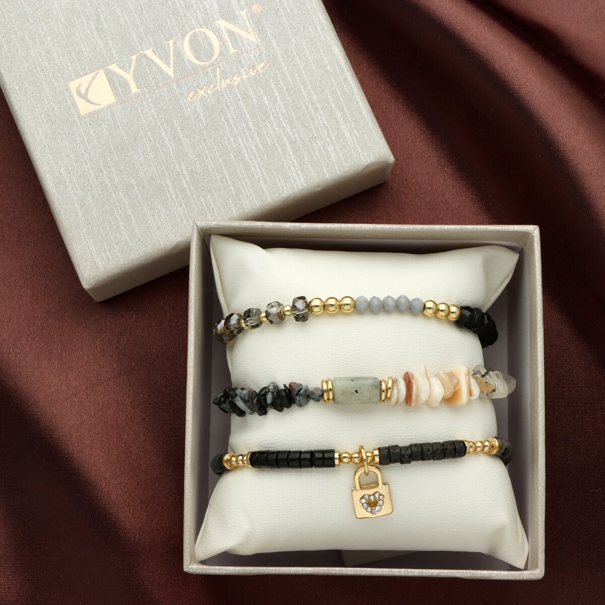 Bransoletki zapakowane są w eleganckie pudełeczko z miękką poduszeczką, co sprawia, że zestaw doskonale nadaje się na prezent.