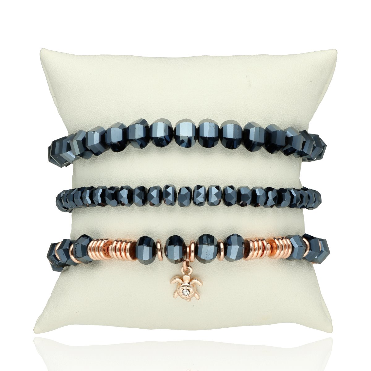 Bransoletki zapakowane są w eleganckie pudełeczko z poduszeczką, co sprawia, że zestaw doskonale nadaje się na prezent.