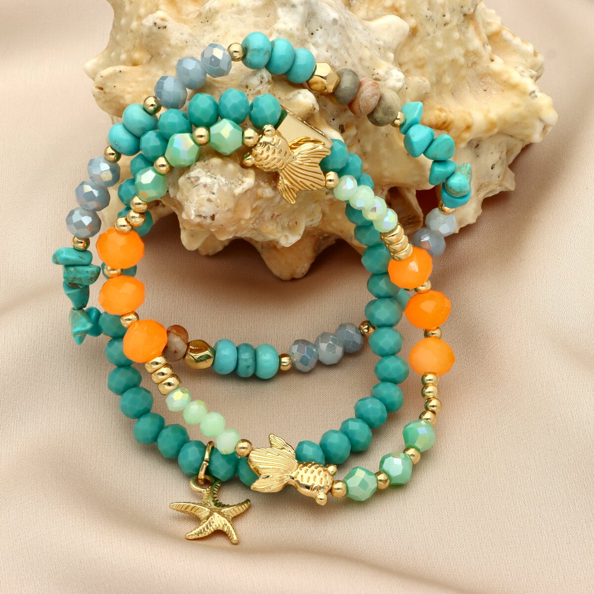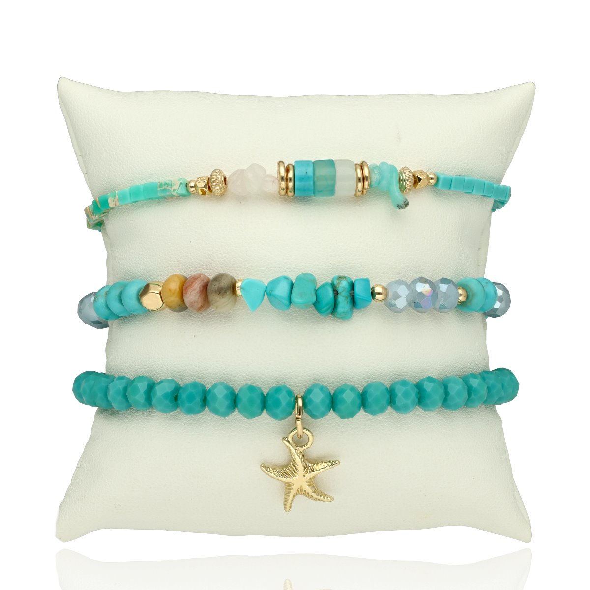 Zestaw trzech bransoletek z hipoalergicznego mosiadzu, szkła kryształowego i KAMIENI NATURALNYCH: turkus, marmur, amazonit.
