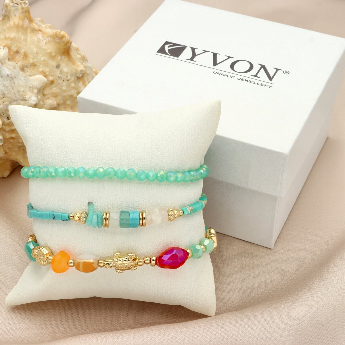 Bransoletki zapakowane są w eleganckie pudełeczko z poduszeczką, co sprawia, że zestaw doskonale nadaje się na prezent.