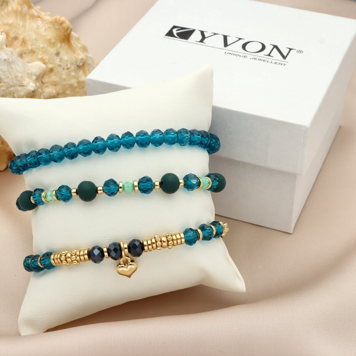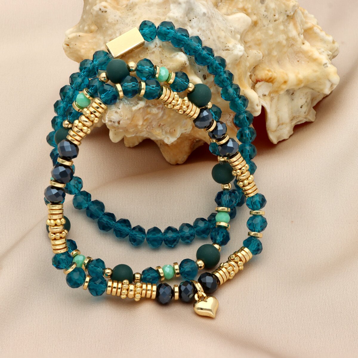 Zestaw trzech bransoletek z hipoalergicznego mosiadzu i szkła kryształowego.