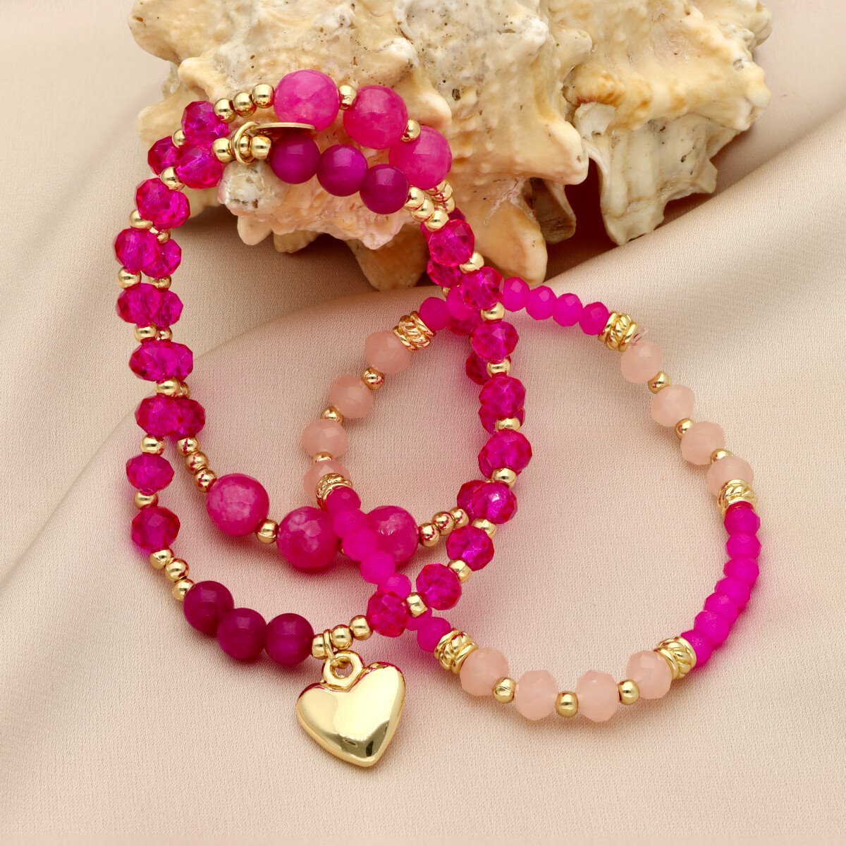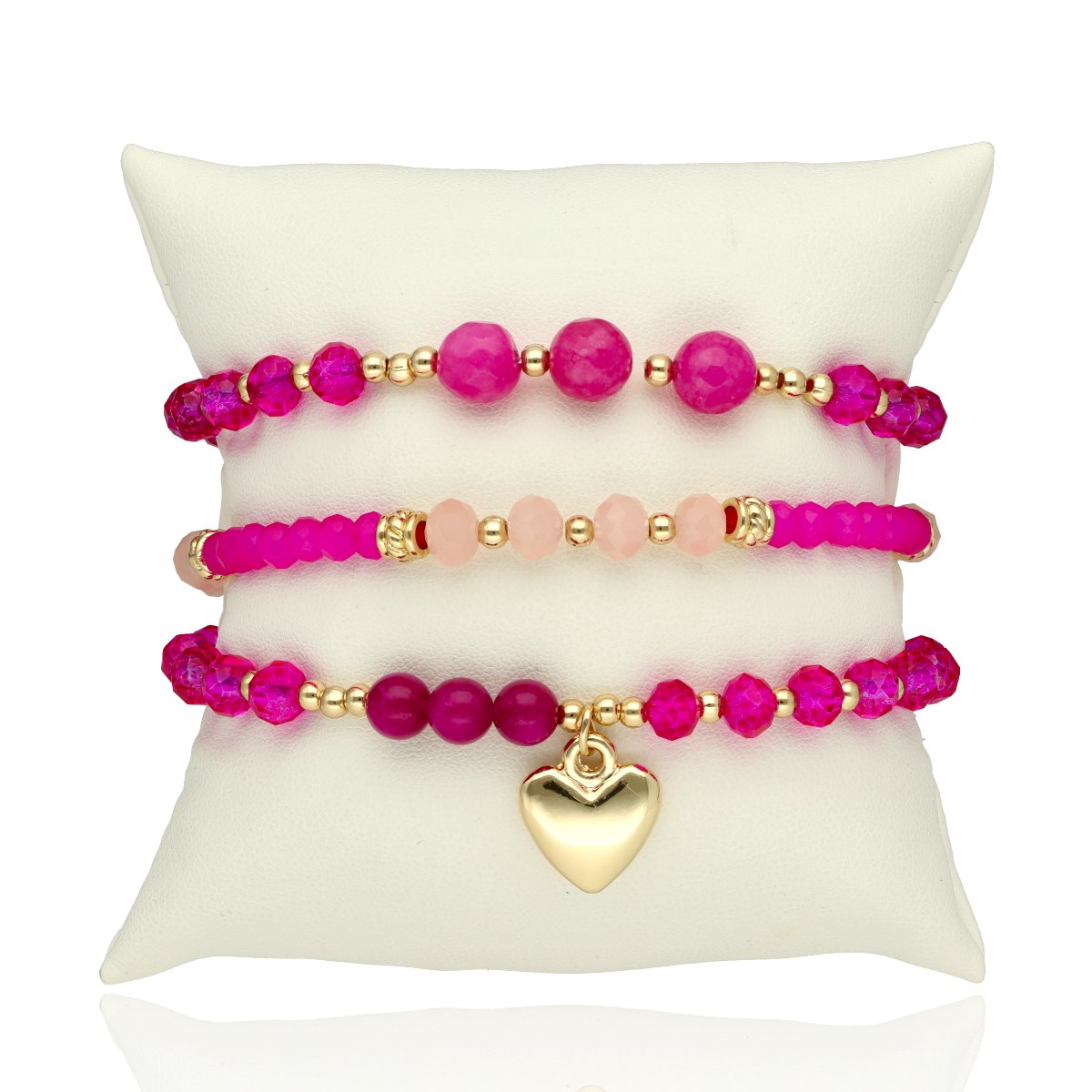 Zestaw trzech bransoletek z hipoalergicznego mosiadzu, szkła kryształowego i KAMIENI NATURALNYCH: marmur, rubelit.