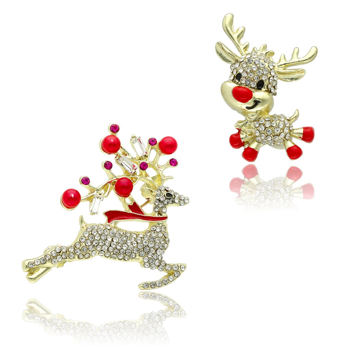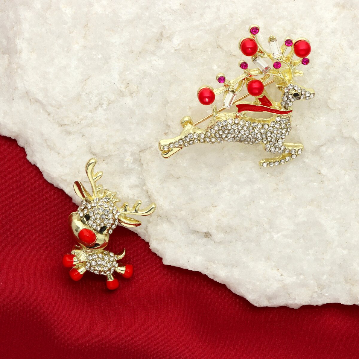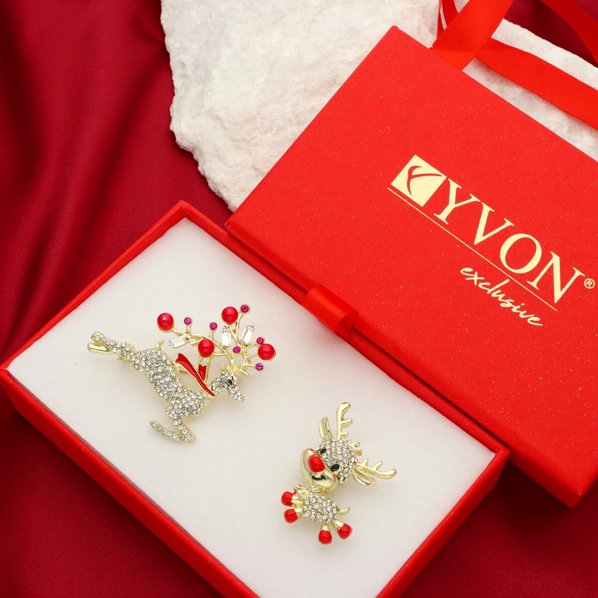 Zestaw dwóch świątecznych broszek YVON. Idealny pomysł na prezent - całość zapakowana jest w eleganckim czerwonym wysuwanym pudełku. Dopełnieniem może okazać się czerwona świąteczna torebeczka P5031.