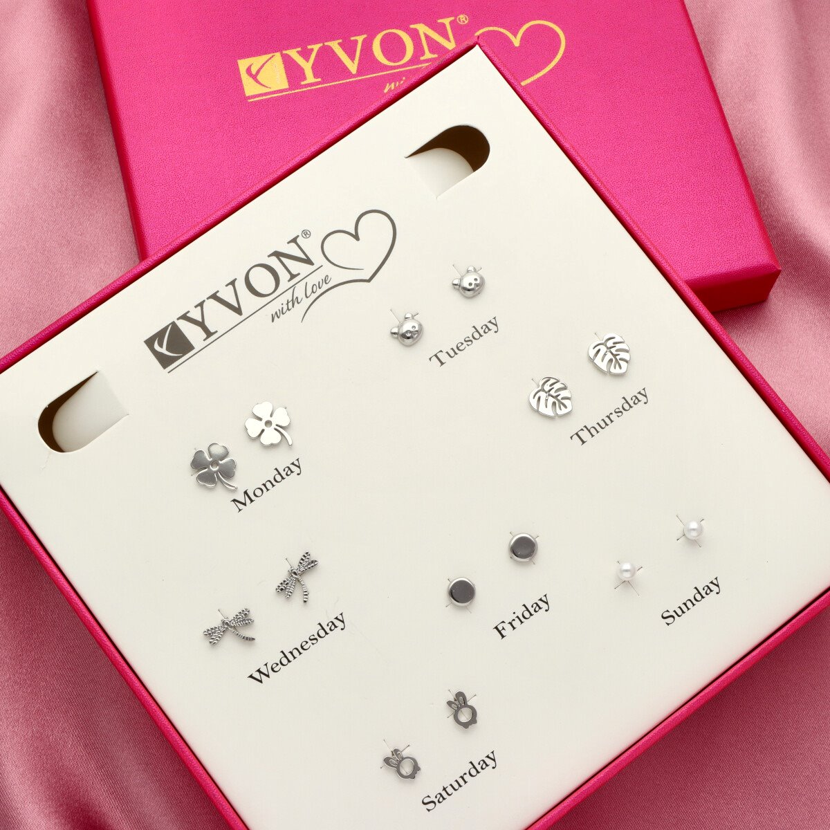 Zestaw 7 par kolczyków na każdy dzień tygodnia to kobiecy, dopracowany komplet, który pozwala dopasować biżuterię do nastroju i stylizacji. W eleganckim pudełku znajdują się subtelne wzory – od minimalistycznych kulek, przez kokardki i kółka, aż po motywy ozdobione cyrkoniami. Kolczyki zostały wykonane z mosiądzu i ozdobione lśniącymi cyrkoniami, które pięknie odbijają światło i nadają biżuterii delikatnego blasku. To idealny wybór zarówno do codziennych stylizacji, jak i na wyjątkowe okazje. Eleganckie opakowanie z podziałem na dni tygodnia podkreśla koncepcję „kolczyki na każdy dzień”. Materiał: mosiądz Zdobienie: cyrkonie Zapięcie: sztyft Ilość par w zestawie: 7