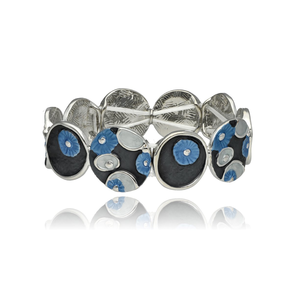 Bransoleta z kolekcji YVON biżuteria artystyczna, wykonana z metalu hipoalergicznego, zdobiona emaliowanymi elementami. Konstrukcja oparta na elastycznych gumeczkach dopasowuje się do każdego nadgarstka, zapewniając komfort noszenia. Wykończona z dbałością o detale, zachwyca artystycznym wzornictwem. Zapakowana w eleganckie pudełko prezentowe YVON – doskonały wybór zarówno do codziennych, jak i wieczorowych stylizacji.