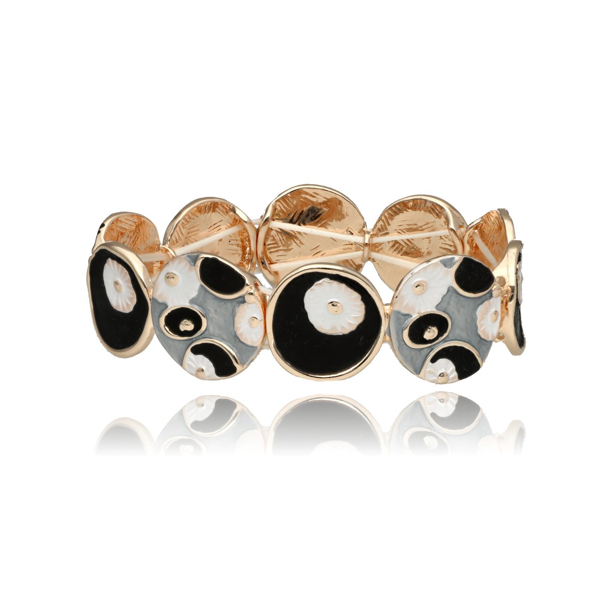 Bransoleta z kolekcji YVON biżuteria artystyczna, wykonana z metalu hipoalergicznego, zdobiona emaliowanymi elementami. Konstrukcja oparta na elastycznych gumeczkach dopasowuje się do każdego nadgarstka, zapewniając komfort noszenia. Wykończona z dbałością o detale, zachwyca artystycznym wzornictwem. Zapakowana w eleganckie pudełko prezentowe YVON – doskonały wybór zarówno do codziennych, jak i wieczorowych stylizacji.