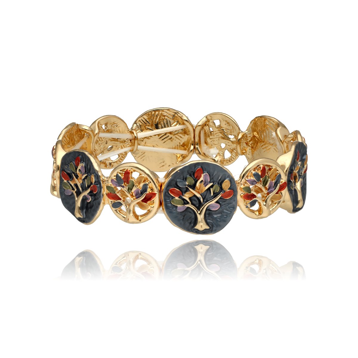 Bransoleta z kolekcji YVON BIŻUTERIA ARTYSTYCZNA, wykonana z metalu hipoalergicznego i zdobiona emaliowanymi elementami. Konstrukcja oparta na elastycznych gumeczkach dopasowuje się do każdego nadgarstka, zapewniając komfort noszenia. Wykończona z dbałością o detale, zachwyca artystycznym wzornictwem. Zapakowana w eleganckie pudełko prezentowe YVON – doskonały wybór zarówno do codziennych, jak i wieczorowych stylizacji.