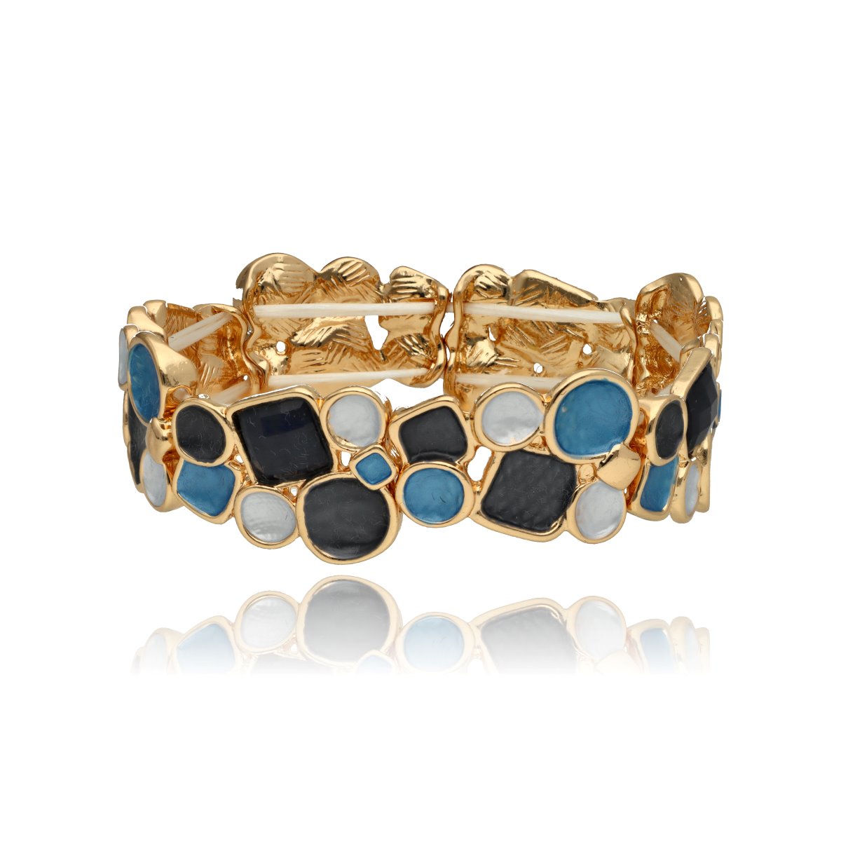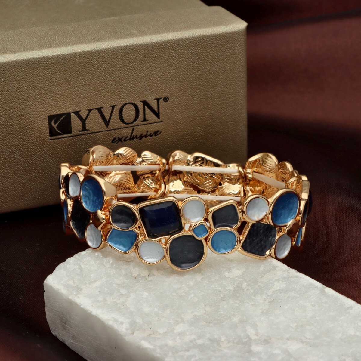 Bransoleta z kolekcji YVON BIŻUTERIA ARTYSTYCZNA, wykonana z metalu hipoalergicznego i zdobiona emaliowanymi elementami. Konstrukcja oparta na elastycznych gumeczkach dopasowuje się do każdego nadgarstka, zapewniając komfort noszenia. Wykończona z dbałością o detale, zachwyca artystycznym wzornictwem. Zapakowana w eleganckie pudełko prezentowe YVON – doskonały wybór zarówno do codziennych, jak i wieczorowych stylizacji.
