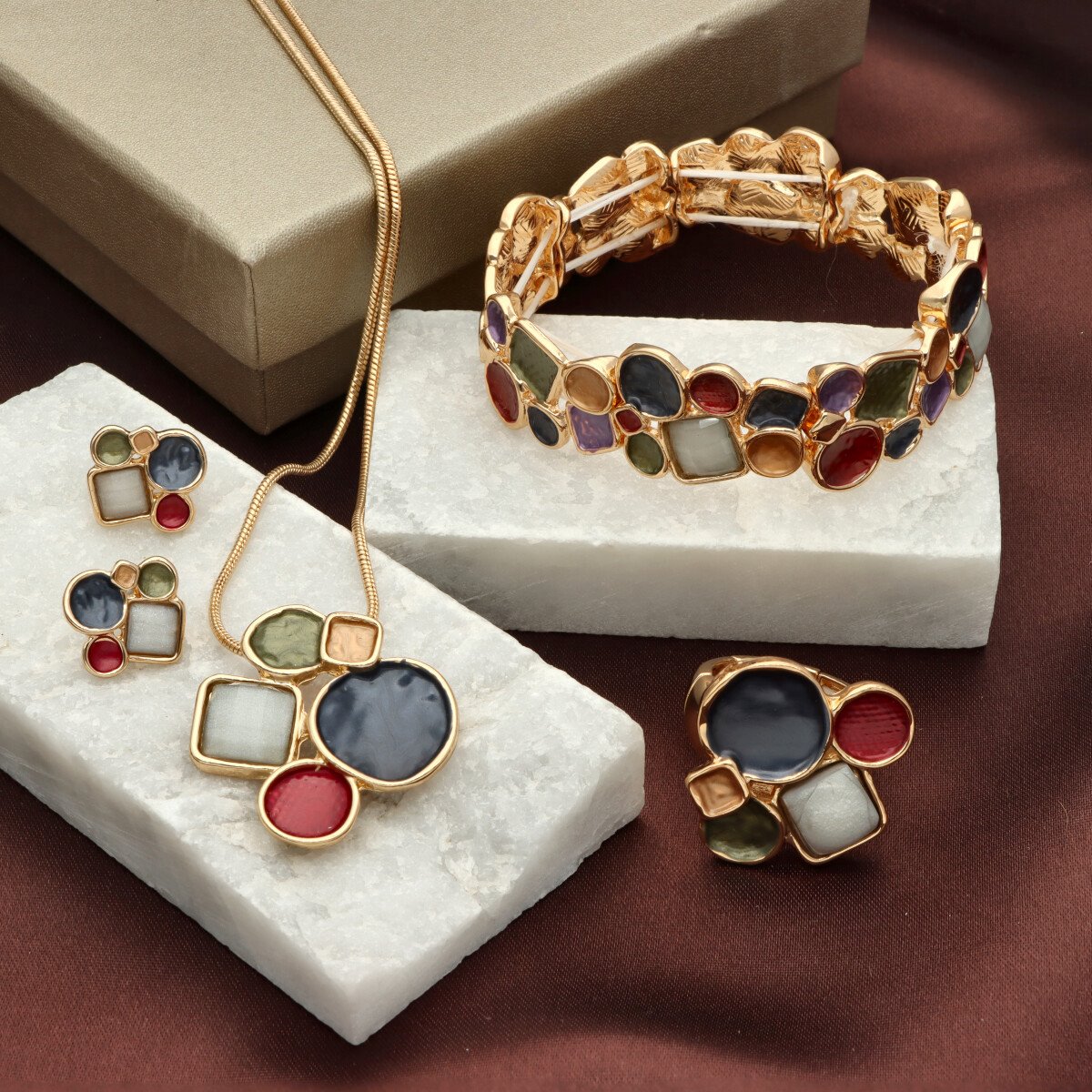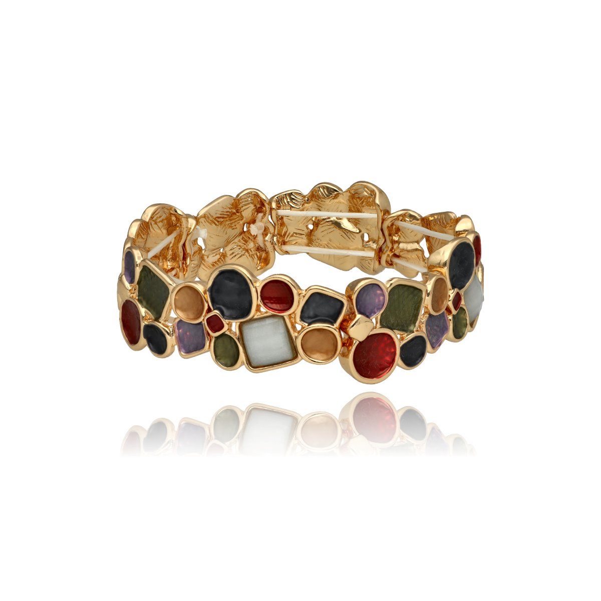 Bransoleta z kolekcji YVON BIŻUTERIA ARTYSTYCZNA, wykonana z metalu hipoalergicznego i zdobiona emaliowanymi elementami. Konstrukcja oparta na elastycznych gumeczkach dopasowuje się do każdego nadgarstka, zapewniając komfort noszenia. Wykończona z dbałością o detale, zachwyca artystycznym wzornictwem. Zapakowana w eleganckie pudełko prezentowe YVON – doskonały wybór zarówno do codziennych, jak i wieczorowych stylizacji.