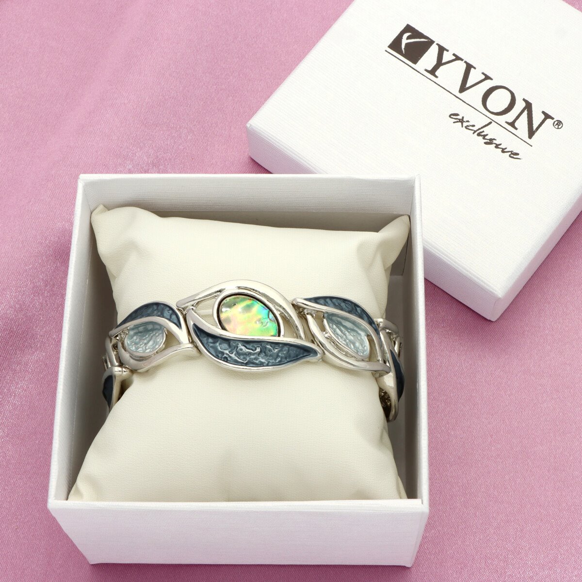 Bransoletka wykonana w konwencji biżuterii artystycznej. Ręcznie emaliowana, z muszlą naturalną. Rozmiar uniwersalny. Całość wykonana z antyalergicznego metalu. W eleganckim pudełku. Szukaj do kompletu naszyjnika, kolczyków i broszki na magnes o tym samym indeksie numerycznym.