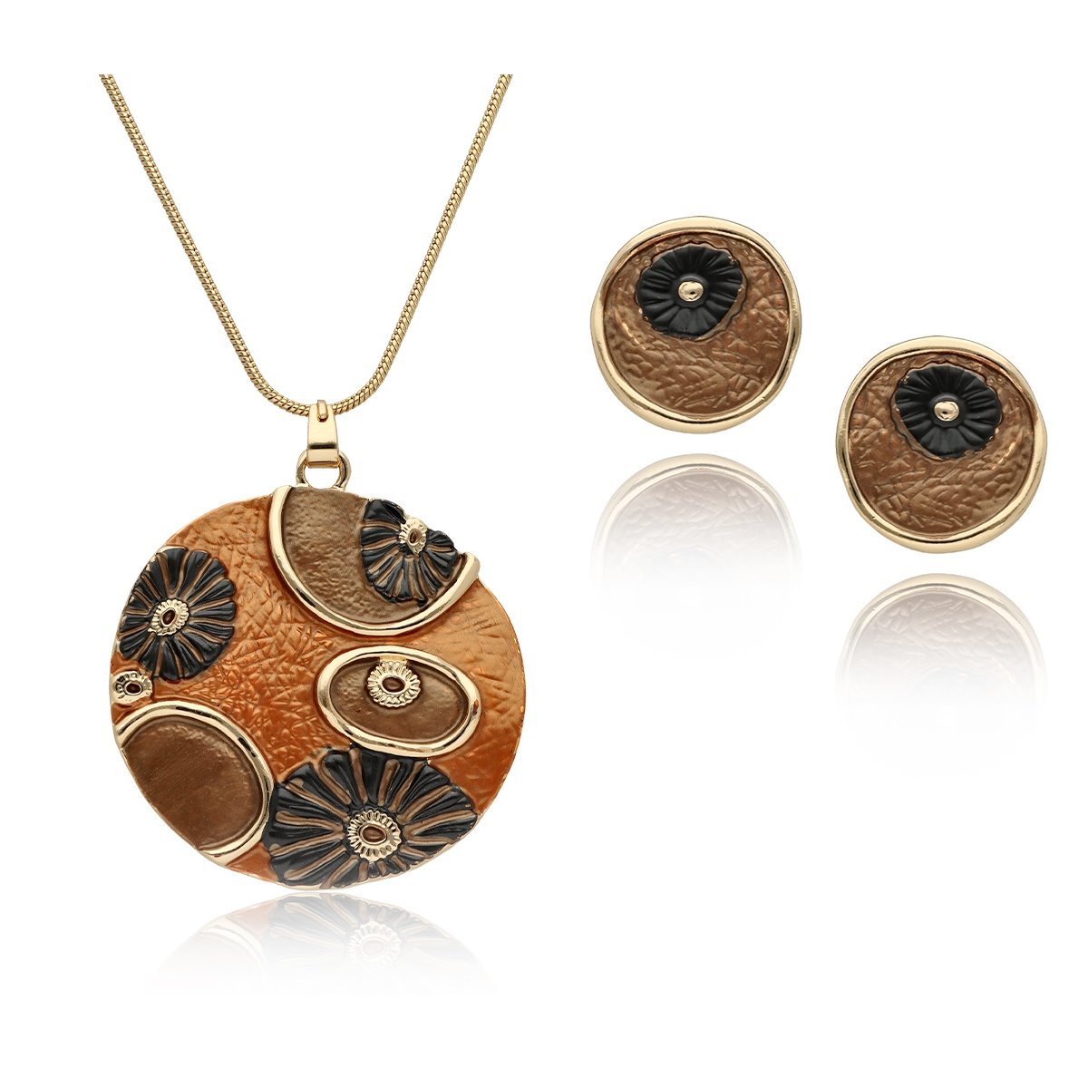 Komplet z kolekcji YVON biżuteria artystyczna, wykonany z metalu hipoalergicznego, pozbawionego niklu i ołowiu. Zdobiony emaliowanymi elementami, które tworzą elegancką, harmonijną kompozycję. Naszyjnik o długości 42 cm z możliwością regulacji o dodatkowe 8 cm, idealnie układa się na dekolcie. Kolczyki na wygodnym zapięciu typu sztyft. Całość zapakowana w eleganckie pudełko prezentowe YVON. To wyjątkowy komplet, który podkreśla kobiecą klasę i artystyczne wyczucie stylu.