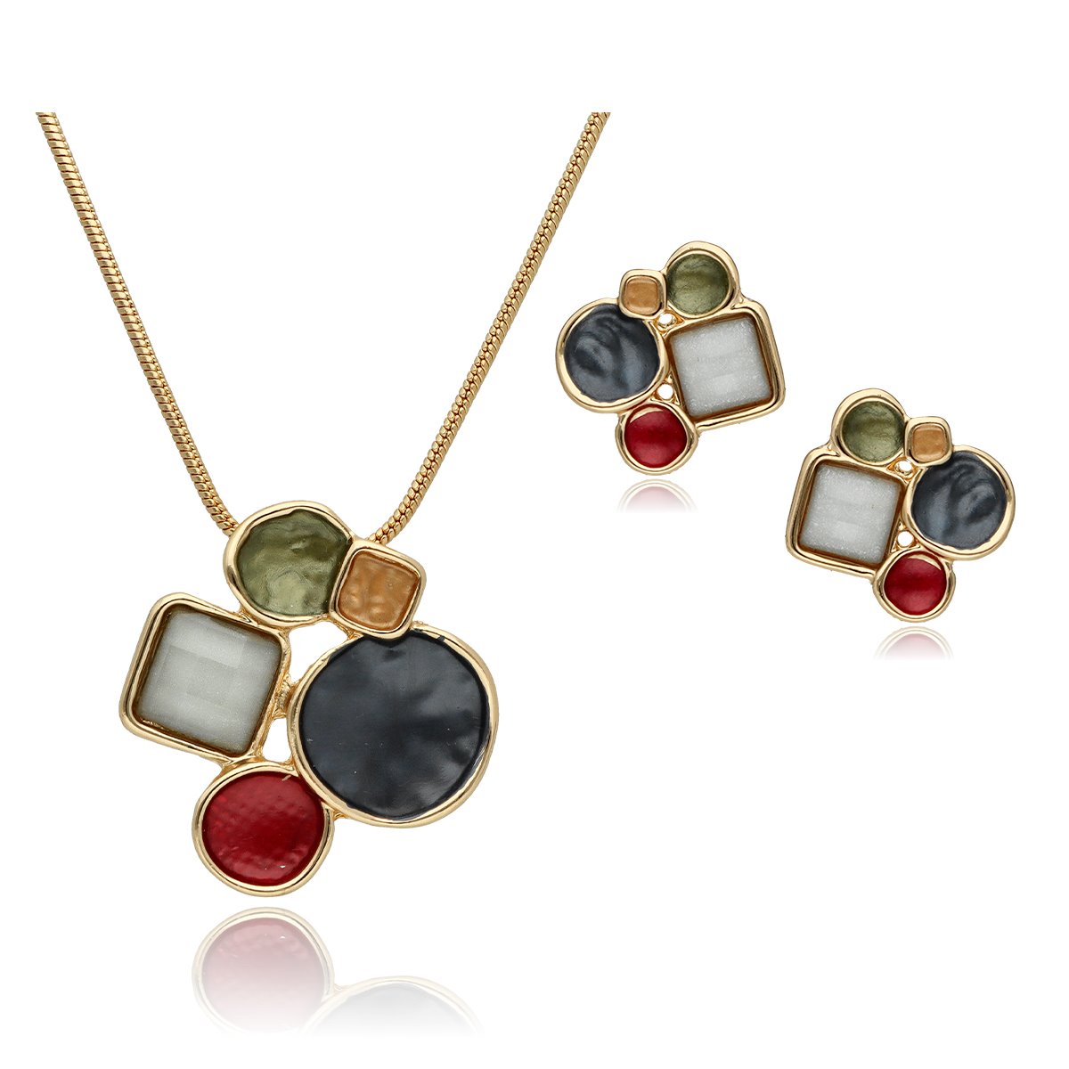 Komplet z kolekcji YVON BIŻUTERIA ARTYSTYCZNA, wykonany z metalu hipoalergicznego. Zdobiony emaliowanymi elementami, które tworzą elegancką, harmonijną kompozycję. Naszyjnik o długości 42 cm z możliwością regulacji o dodatkowe 8 cm, idealnie układa się na dekolcie. Kolczyki na wygodnym zapięciu typu sztyft. Całość zapakowana w eleganckie pudełko prezentowe YVON. To wyjątkowy komplet, który podkreśla kobiecą klasę i artystyczne wyczucie stylu.