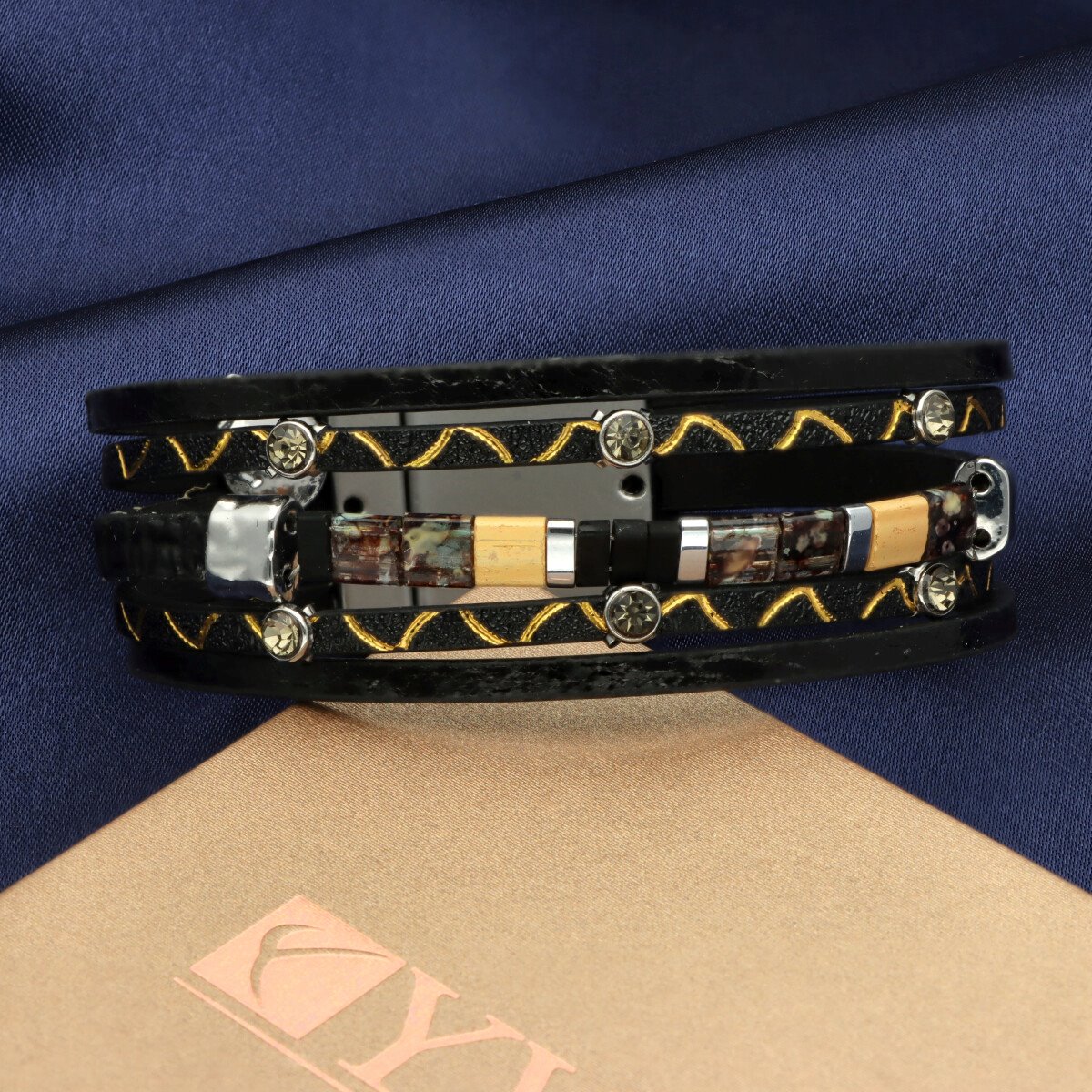 Elegancka bransoletka wykonana z wysokiej jakości skóry naturalnej i eko, oryginalnych japońskich koralików TILA, zaprojektowana z myślą o nowoczesnych kobietach ceniących styl i wygodę. Wielowarstwowa struktura i metalowe akcenty nadają jej wyrazisty, ale ponadczasowy charakter.