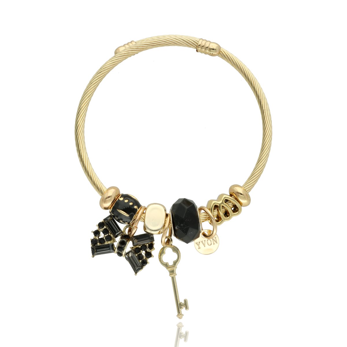 Urocza bransoletka wykonana ze stali szlachetnej (obręcz) oraz zamaku, szkła fasetowanego, ceramiki i emalii (czarmsy). W eleganckim PUDEŁECZKU GRATIS - idealny pomysł na prezent. Biżuteria hypoalergiczna.