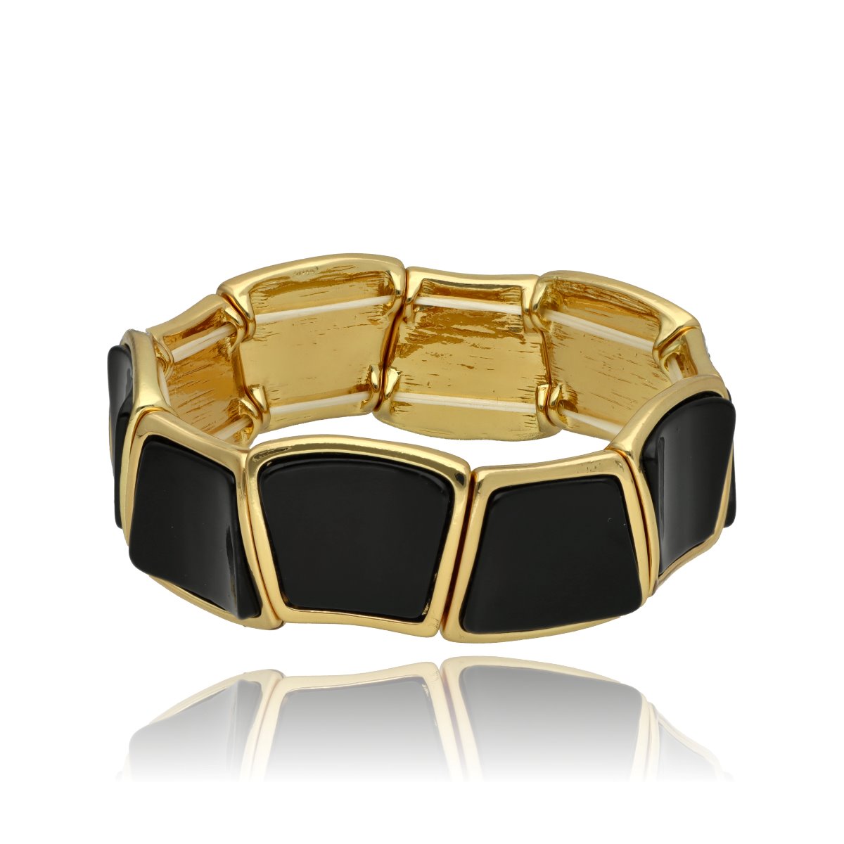 Uniwersalna, rozciągliwa bransoletka wykonana z metalu (zamak) i elementu z kolorowej żywicy. Osadzona na elastycznej gumce, dopasowuje się do większości nadgarstków, zapewniając komfort i wygodę noszenia.