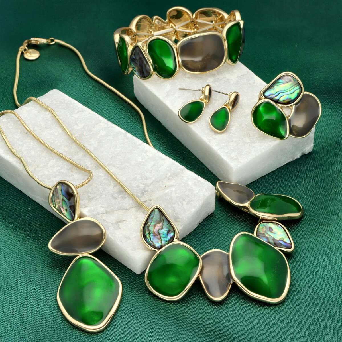 Uniwersalna, rozciągliwa bransoletka stworzona z elementów z kolorowej żywicy, emalii oraz naturalnej muszli. Osadzona na elastycznej gumce, dopasowuje się do większości nadgarstków, zapewniając komfort i wygodę noszenia.