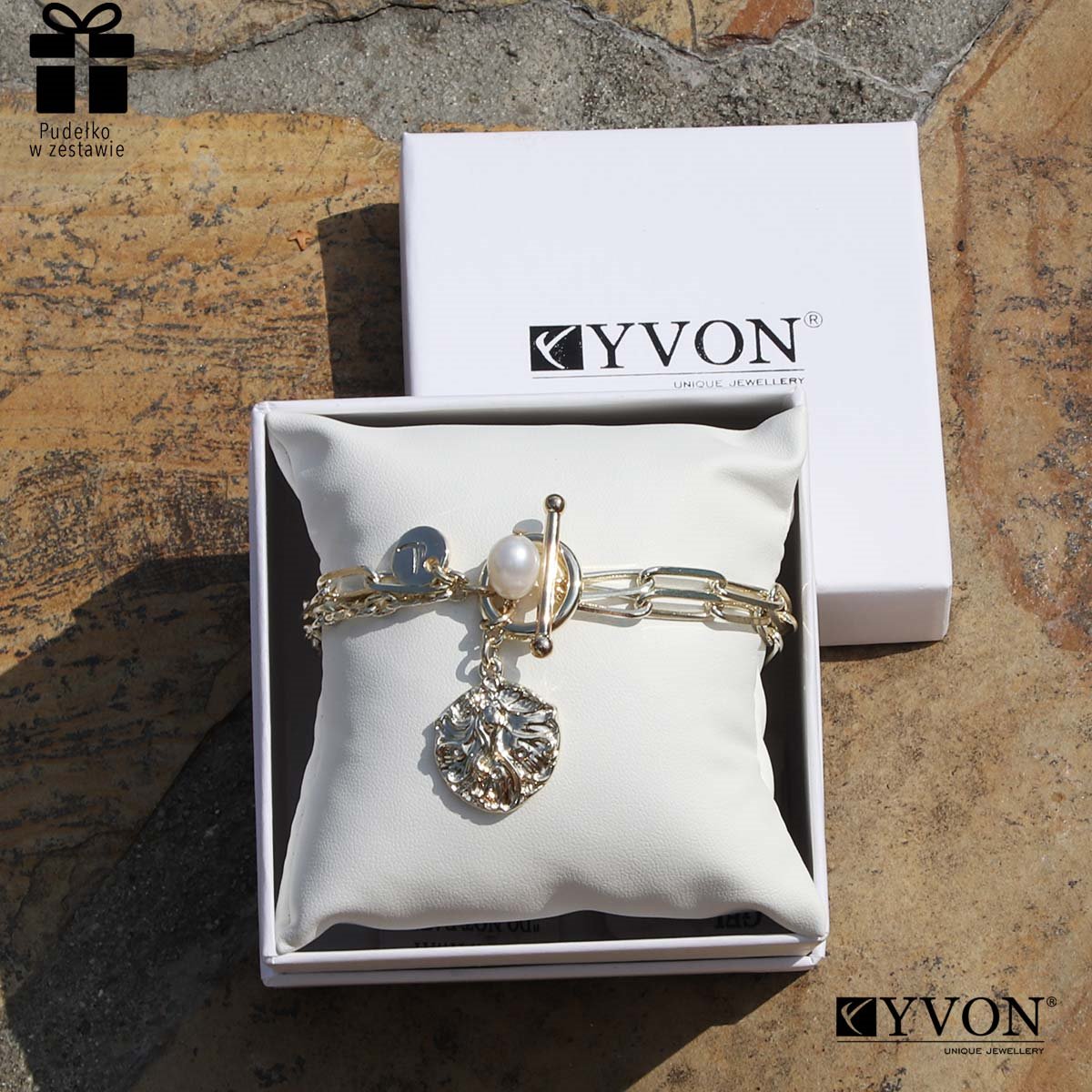 Najmodniejsza w tym sezonie bransoletka z łańcuszków z przywieszką, wykonana ze szlachetnego mosiądzu i PEREŁ NATURALNYCH. Znakomite uzupełnienie codziennych i wieczorowych stylizacji. Długość: 19 cm. Biżuteria YVON® jest w 100% antyalergiczna. Może być noszona przez kobiety o wyjątkowo delikatnej skórze. Szukaj do kompletu naszyjnika o tym samym indeksie numerycznym. W komplecie ekskluzywne pudełeczko GRATIS!