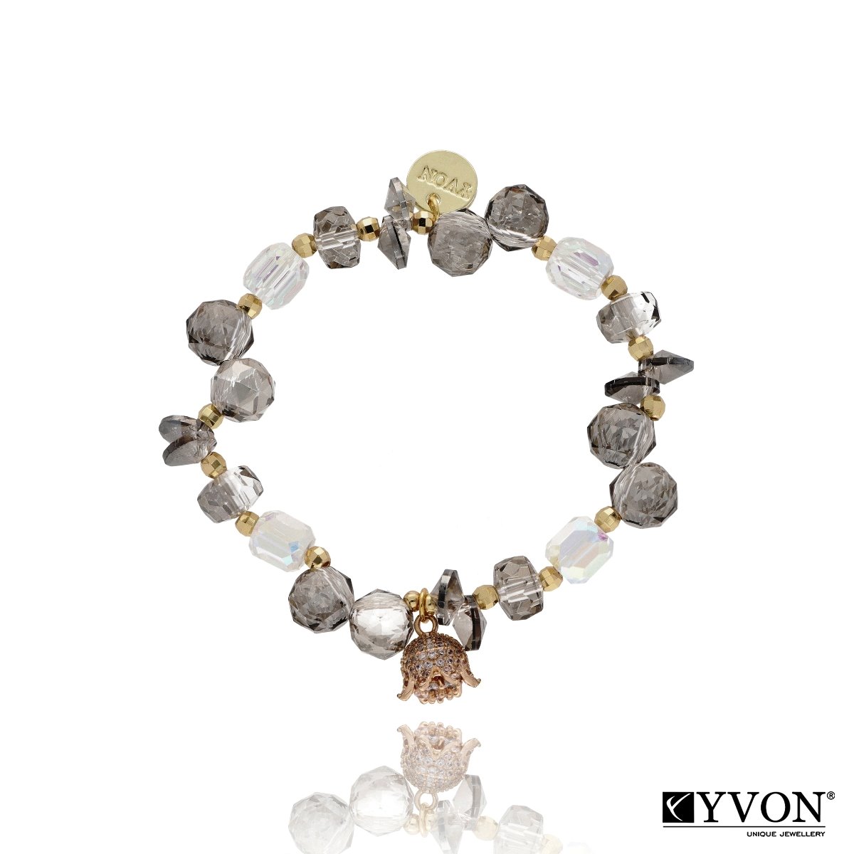 Uwodzicielska bransoletka z serii YVON LOVELY STONES, wykonana z mosiądzu i kryształu górskiego.