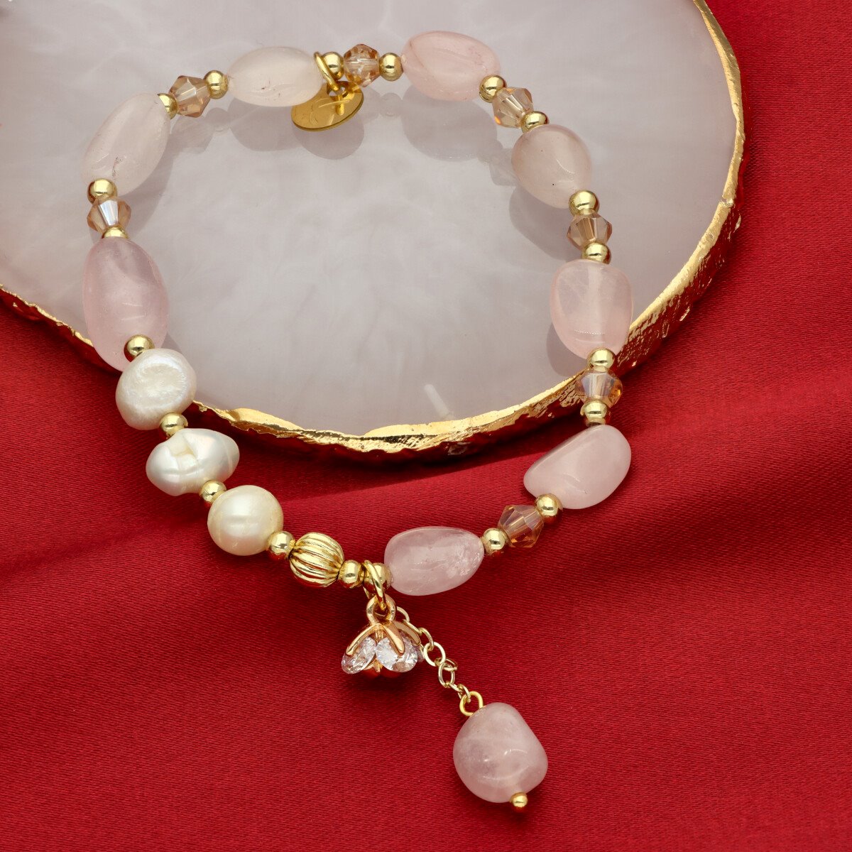 Ekskluzywna bransoletka z kolekcji LOVELY STONES wykonana z najwyższej jakości mosiądzu, kwarcu, pereł naturalnych. Każdy element został starannie dobrany, by zachwycać subtelnym blaskiem i ponadczasową elegancją. Biżuteria umieszczona w eleganckim, firmowym pudełeczku - idealnie sprawdzi się jako prezent. Produkt w 100% antyalergiczny – bezpieczny nawet dla bardzo wrażliwej skóry.