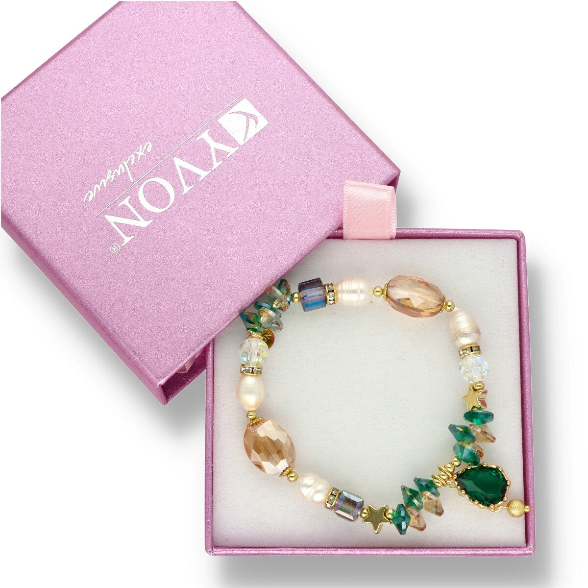 Ekskluzywna bransoletka z kolekcji LOVELY STONES wykonana z najwyższej jakości mosiądzu, pereł naturalnych, kryształu górskiego, cyrkonii.