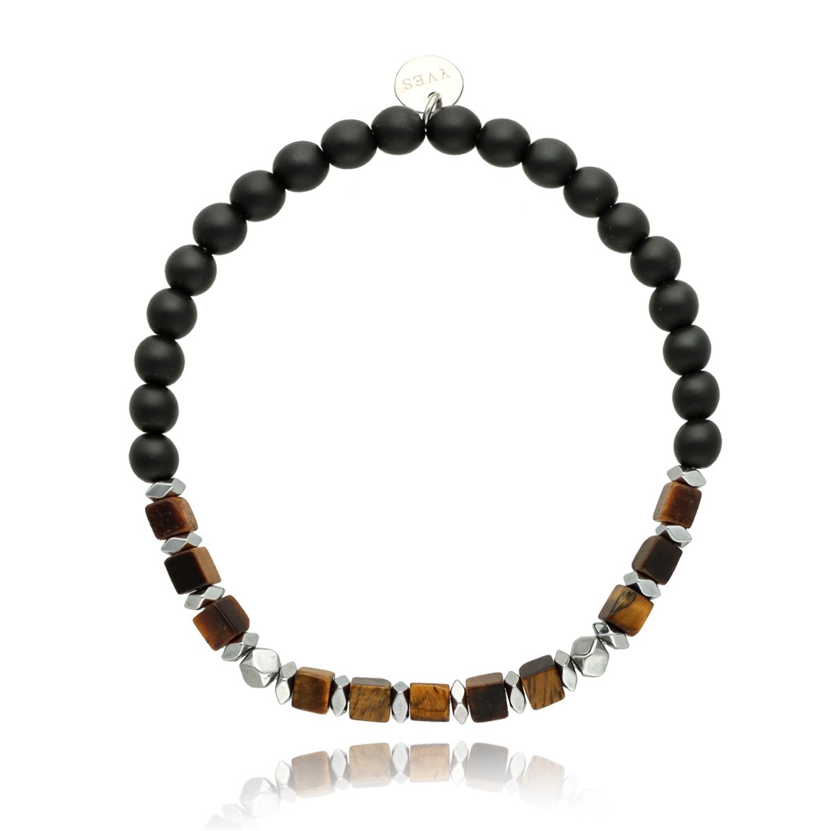 Bransoletka męska YVES wykonana z naturalnych kamieni – tiger eye i agatu – zestawionych ze stalą szlachetną. Osadzona na wytrzymałych, elastycznych gumkach, dzięki czemu dopasowuje się do każdego nadgarstka. W pełni antyalergiczna, komfortowa w noszeniu. Bransoletka pakowana w eleganckie pudełko, idealna zarówno na co dzień, jak i w formie prezentu. Stanowi komplet z naszyjnikiem o tym samym indeksie.