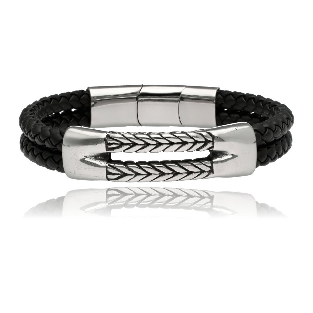 Męska bransoleta wykonana z naturalnej skóry oraz stali szlachetnej 316L, odpornej na uszkodzenia i hipoalergicznej. Prosty, nowoczesny design sprawia, że pasuje zarówno na co dzień, jak i do bardziej eleganckich stylizacji.
