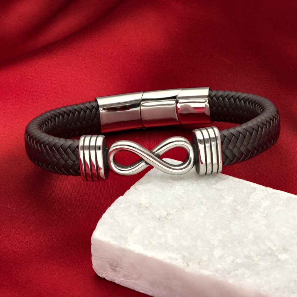 Męska bransoleta wykonana z naturalnej skóry oraz stali szlachetnej 316L, odpornej na uszkodzenia i hipoalergicznej. Prosty, nowoczesny design sprawia, że pasuje zarówno na co dzień, jak i do bardziej eleganckich stylizacji.