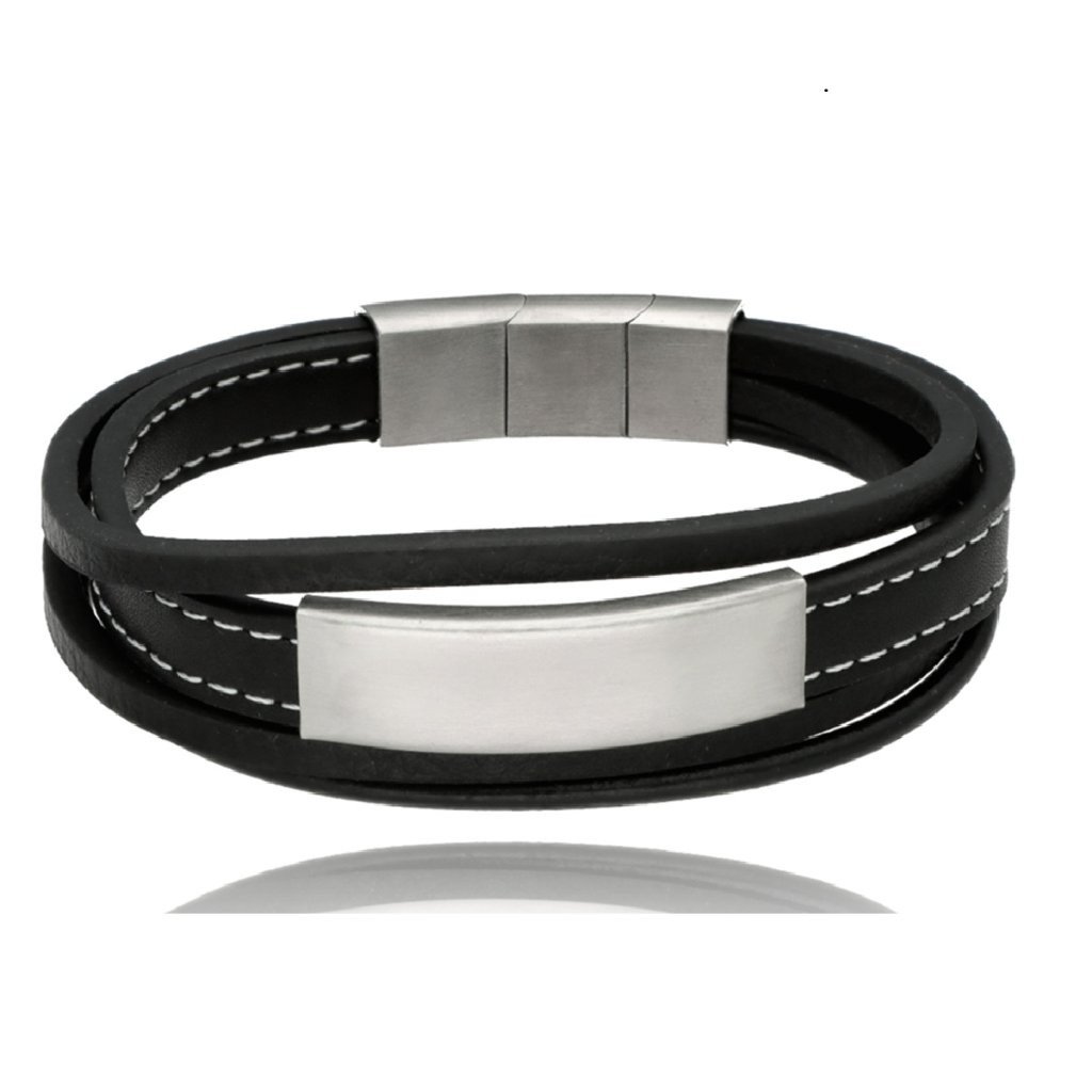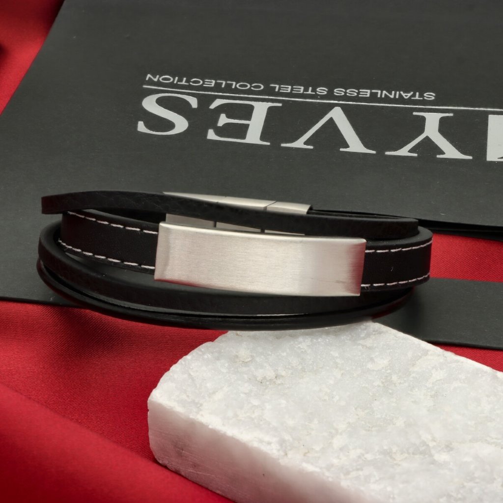 Męska bransoleta wykonana z naturalnej skóry oraz stali szlachetnej 316L, odpornej na uszkodzenia i hipoalergicznej. Prosty, nowoczesny design sprawia, że pasuje zarówno na co dzień, jak i do bardziej eleganckich stylizacji.