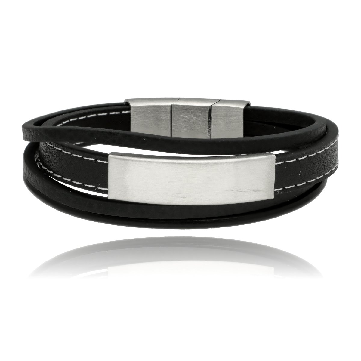 Męska bransoleta wykonana z naturalnej skóry oraz stali szlachetnej 316L, odpornej na uszkodzenia i hipoalergicznej. Prosty, nowoczesny design sprawia, że pasuje zarówno na co dzień, jak i do bardziej eleganckich stylizacji.