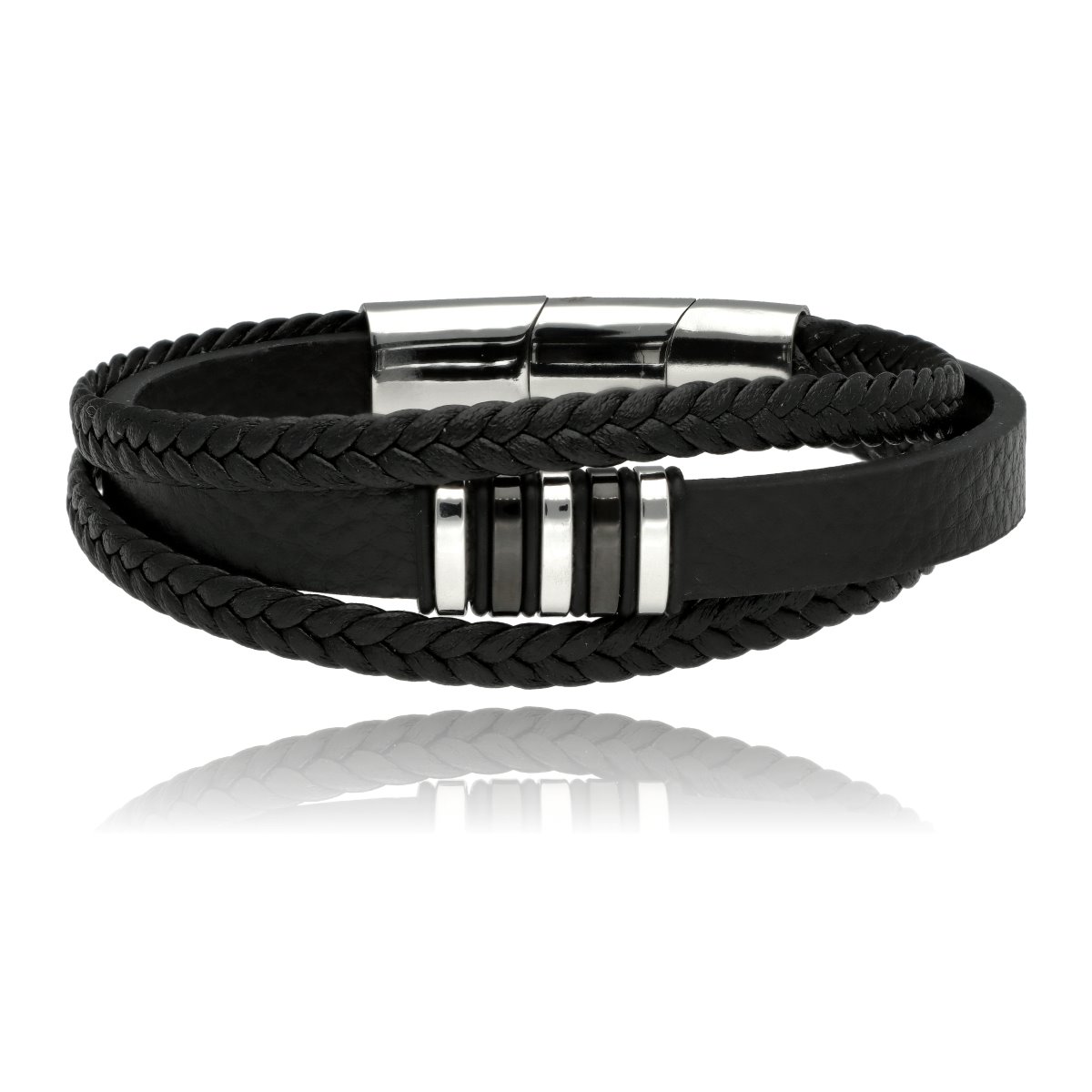 Męska bransoleta wykonana z naturalnej skóry oraz stali szlachetnej 316L, odpornej na uszkodzenia i hipoalergicznej. Prosty, nowoczesny design sprawia, że pasuje zarówno na co dzień, jak i do bardziej eleganckich stylizacji.