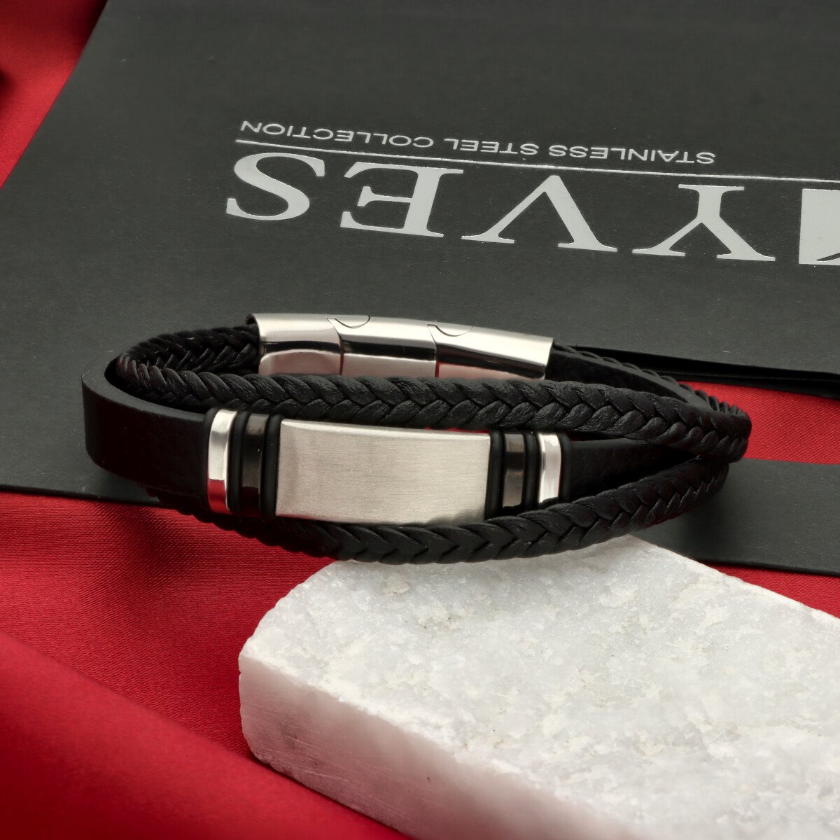 Męska bransoleta wykonana z naturalnej skóry oraz stali szlachetnej 316L, odpornej na uszkodzenia i hipoalergicznej. Prosty, nowoczesny design sprawia, że pasuje zarówno na co dzień, jak i do bardziej eleganckich stylizacji.