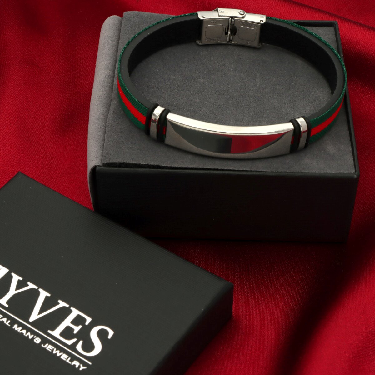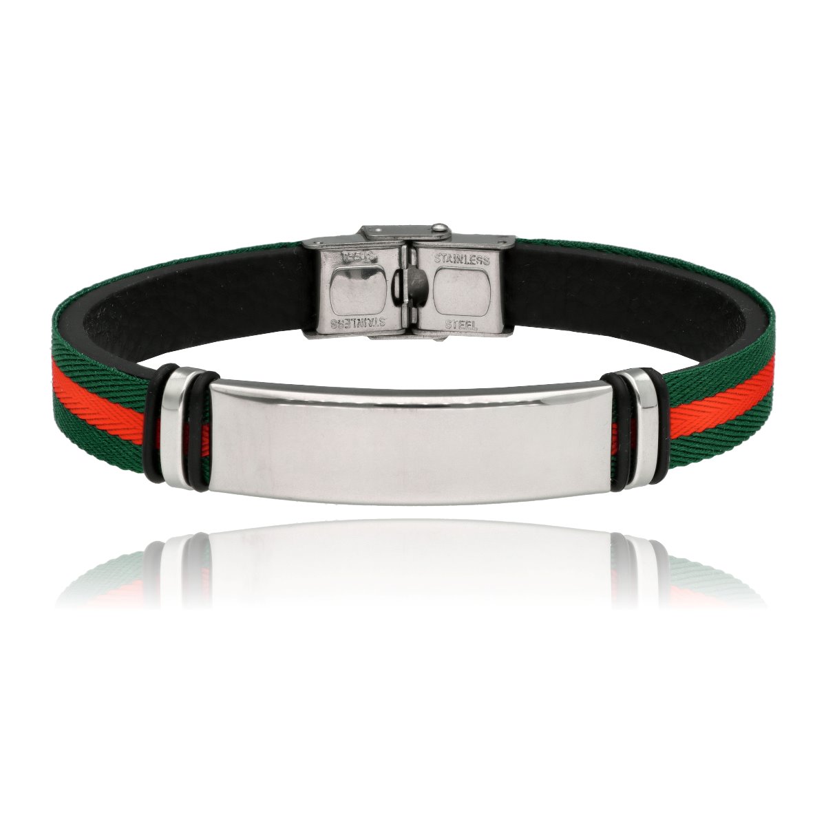 Męska bransoleta wykonana z naturalnej skóry, poliestru oraz stali szlachetnej 316L, odpornej na uszkodzenia i hipoalergicznej. Prosty, nowoczesny design sprawia, że pasuje zarówno na co dzień, jak i do bardziej eleganckich stylizacji.