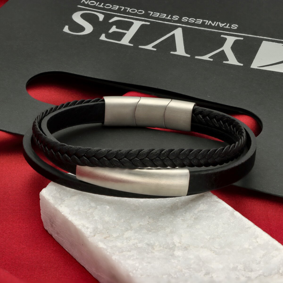 Męska bransoleta wykonana z naturalnej skóry oraz stali szlachetnej 316L, odpornej na uszkodzenia i hipoalergicznej. Prosty, nowoczesny design sprawia, że pasuje zarówno na co dzień, jak i do bardziej eleganckich stylizacji.