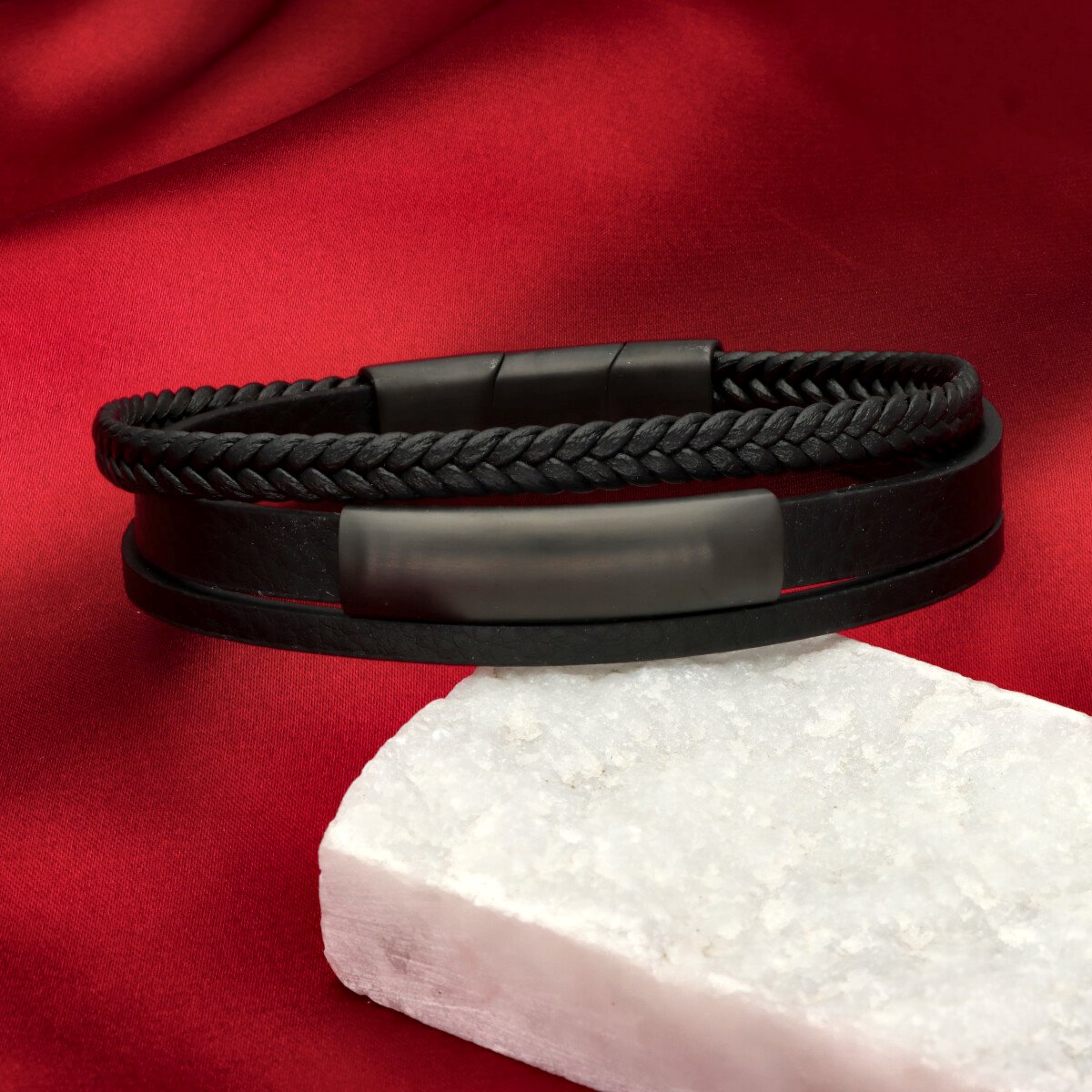 Męska bransoleta wykonana z naturalnej skóry oraz stali szlachetnej 316L, odpornej na uszkodzenia i hipoalergicznej. Prosty, nowoczesny design sprawia, że pasuje zarówno na co dzień, jak i do bardziej eleganckich stylizacji.