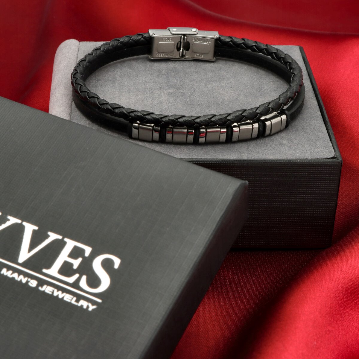 Męska bransoleta wykonana z naturalnej skóry oraz stali szlachetnej 316L, odpornej na uszkodzenia i hipoalergicznej. Prosty, nowoczesny design sprawia, że pasuje zarówno na co dzień, jak i do bardziej eleganckich stylizacji.