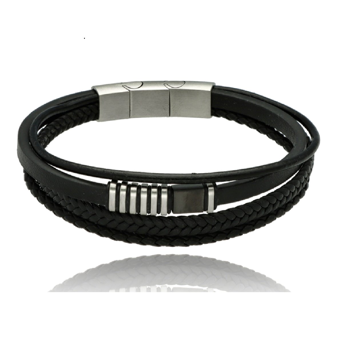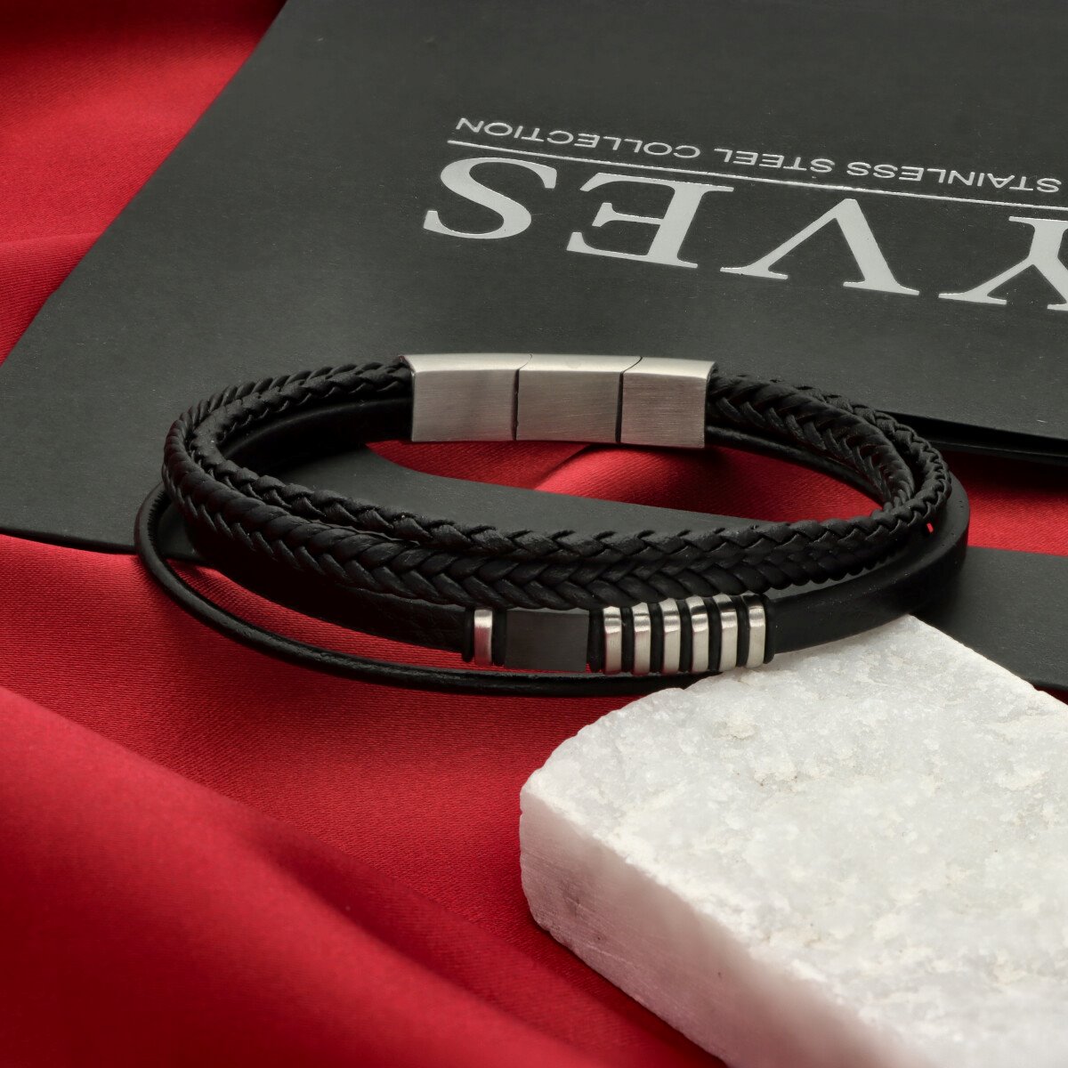 Męska bransoleta wykonana z naturalnej skóry oraz stali szlachetnej 316L, odpornej na uszkodzenia i hipoalergicznej. Prosty, nowoczesny design sprawia, że pasuje zarówno na co dzień, jak i do bardziej eleganckich stylizacji.