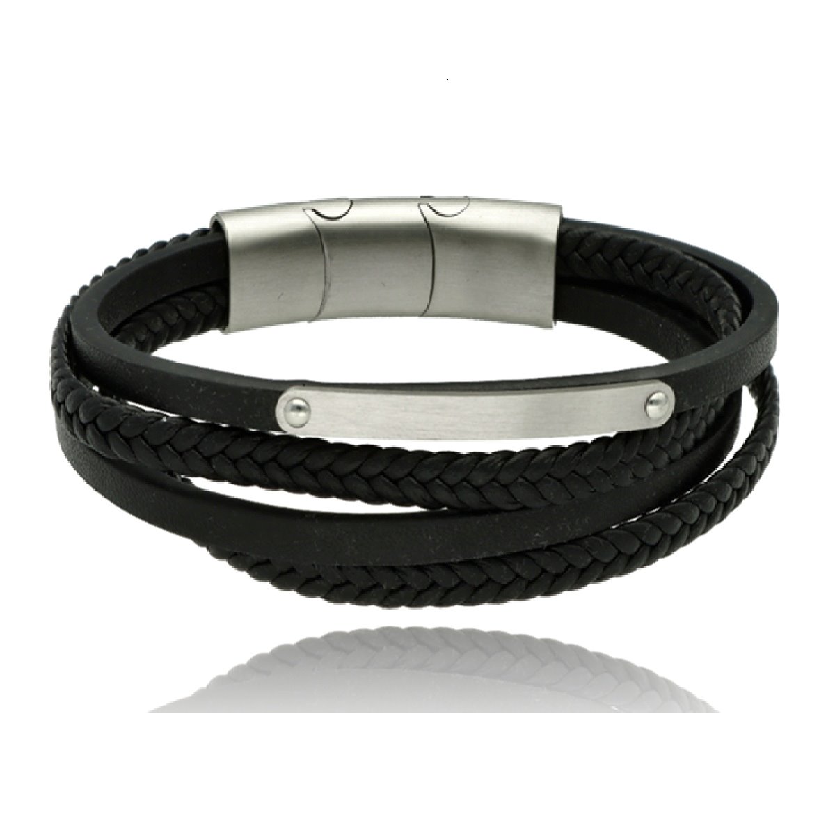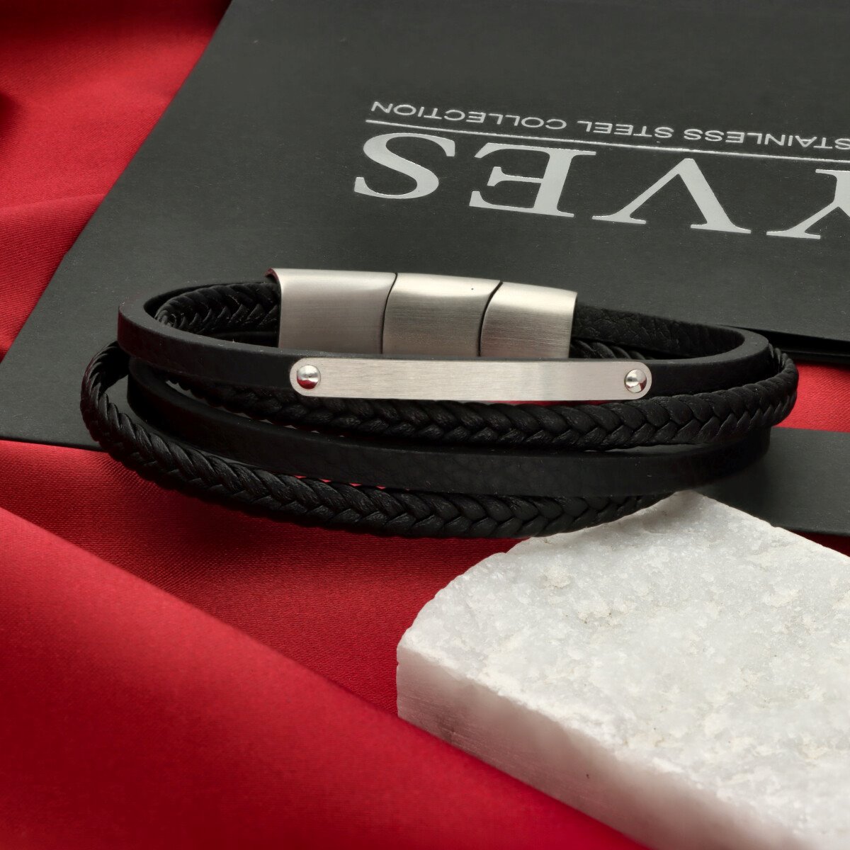 Męska bransoleta wykonana z naturalnej skóry oraz stali szlachetnej 316L, odpornej na uszkodzenia i hipoalergicznej. Prosty, nowoczesny design sprawia, że pasuje zarówno na co dzień, jak i do bardziej eleganckich stylizacji.
