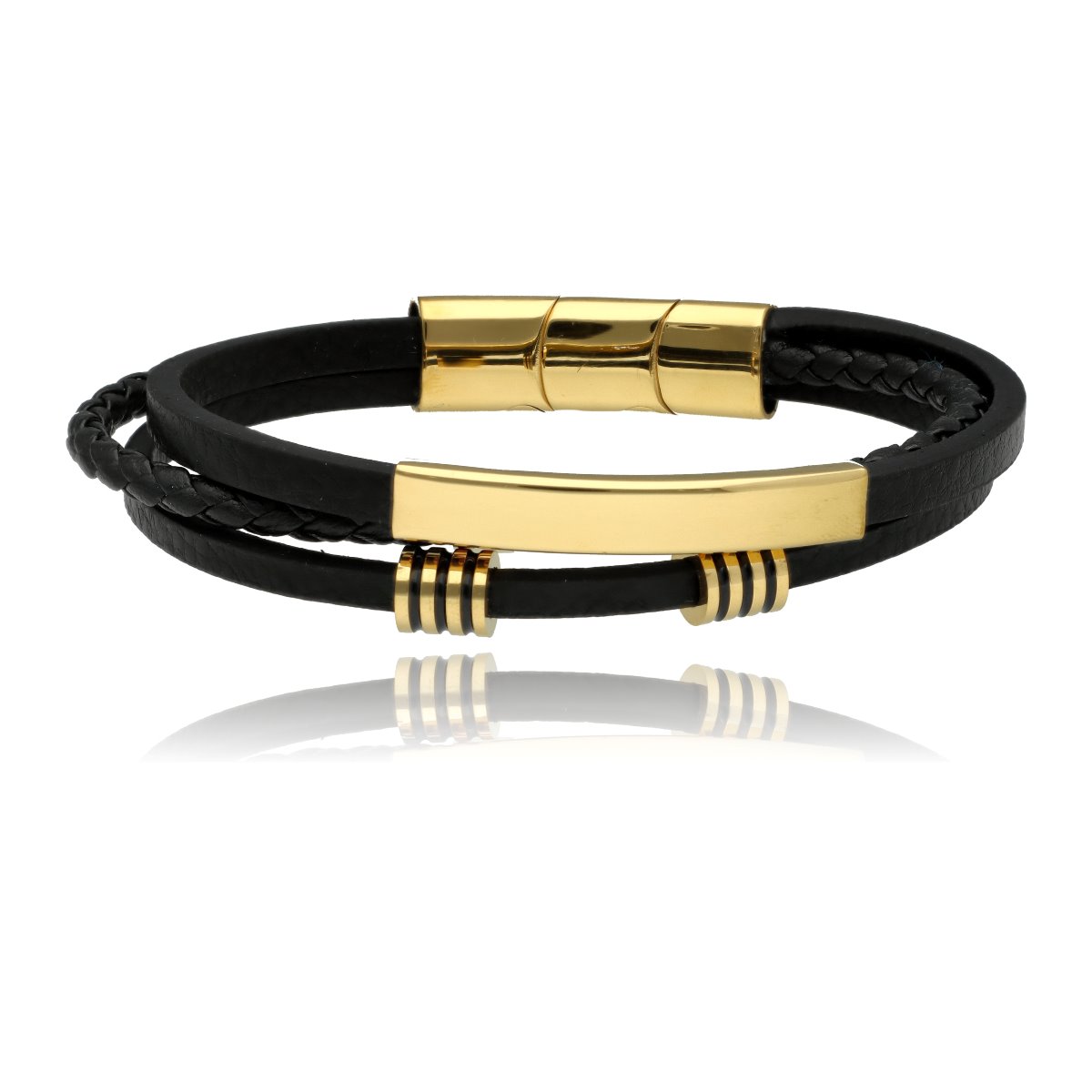 Męska bransoleta wykonana z naturalnej skóry oraz stali szlachetnej 316L, odpornej na uszkodzenia i hipoalergicznej. Prosty, nowoczesny design sprawia, że pasuje zarówno na co dzień, jak i do bardziej eleganckich stylizacji.