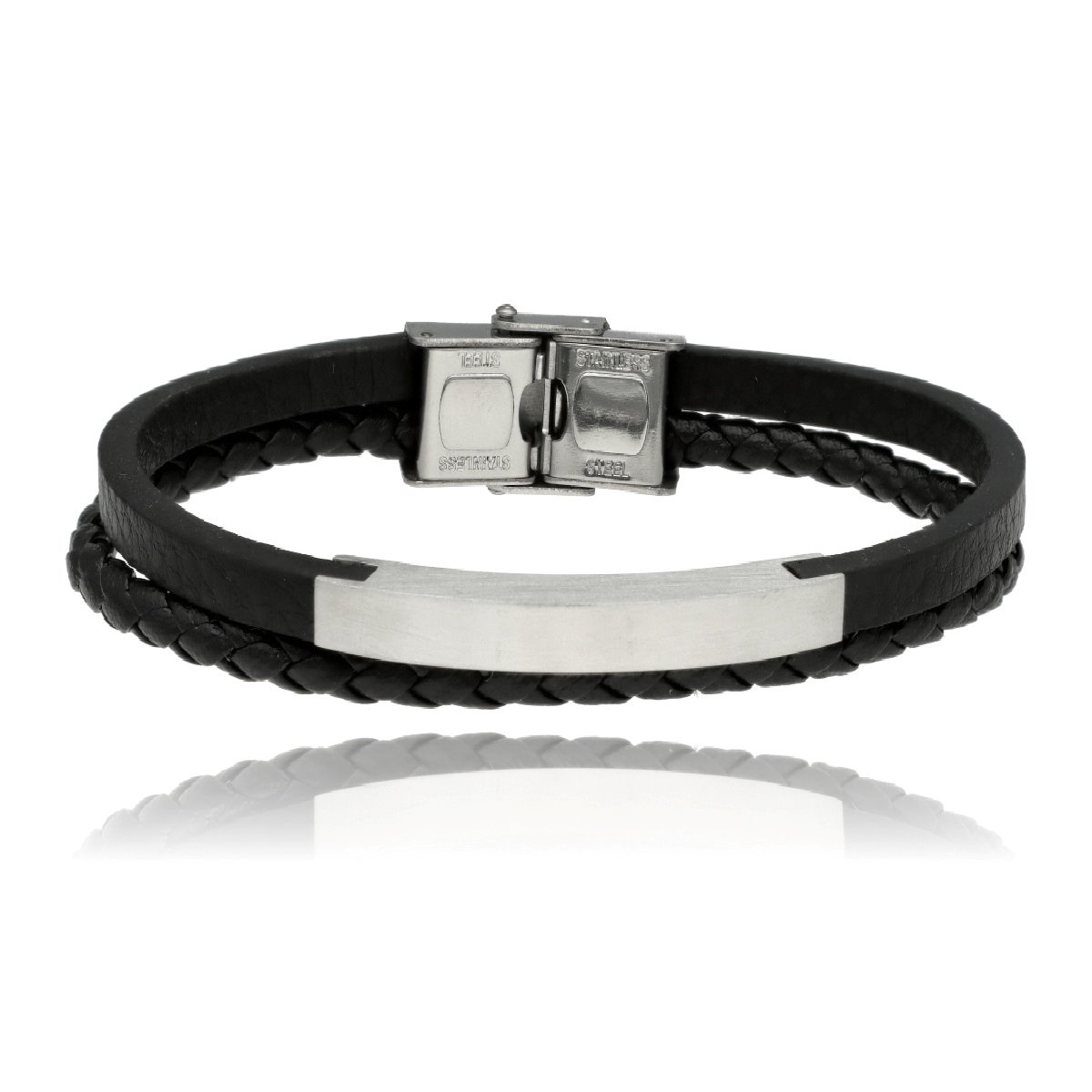 Męska bransoleta wykonana z naturalnej skóry oraz stali szlachetnej 316L, odpornej na uszkodzenia i hipoalergicznej. Prosty, nowoczesny design sprawia, że pasuje zarówno na co dzień, jak i do bardziej eleganckich stylizacji.