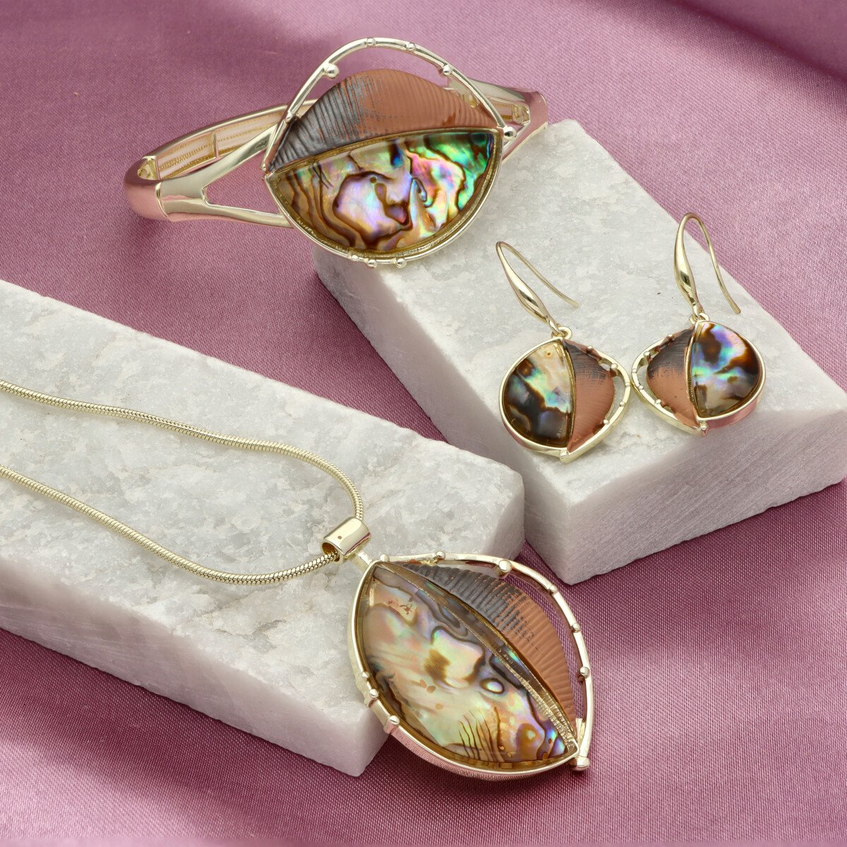 Wykonana z hipoalergicznego metalu (zamak – stop cynku, bezpieczny dla wrażliwej skóry), ozdobiona kolorową emalią oraz żywicą z efektem głębi, która mieni się jak opal i nadaje biżuterii wyjątkowego charakteru.