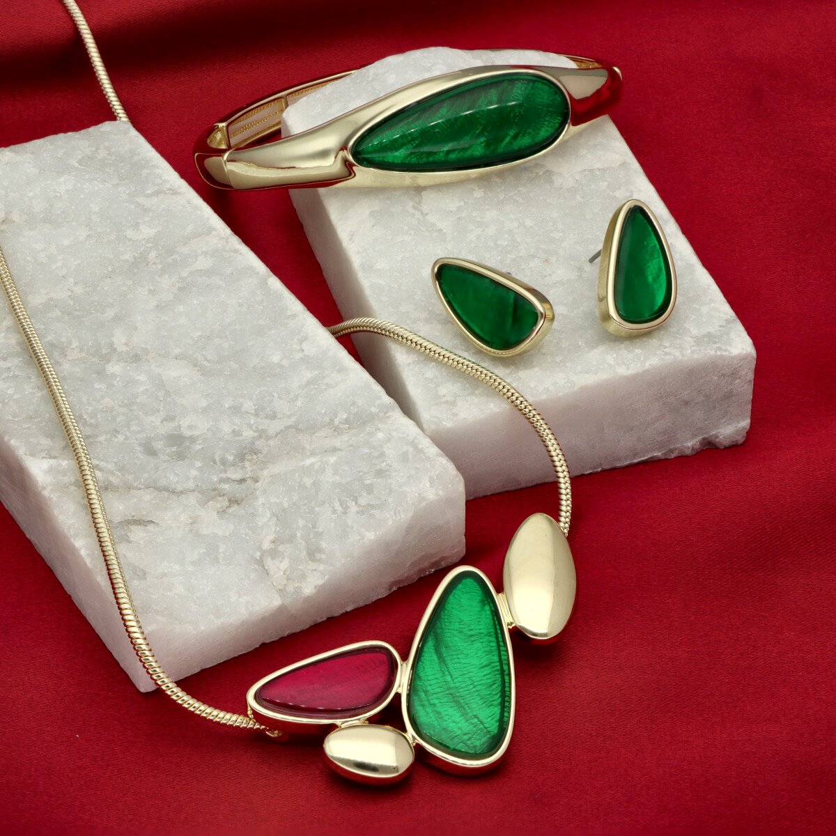 Elegancka bransoletka wykonana z metalu antyalergicznego i żywicy z efektem głębi. Rozmiar uniwersalny (na rozciągliwych gumkach). Szukaj do kompletu naszyjnika i kolczyków o tym samym indeksie numerycznym.