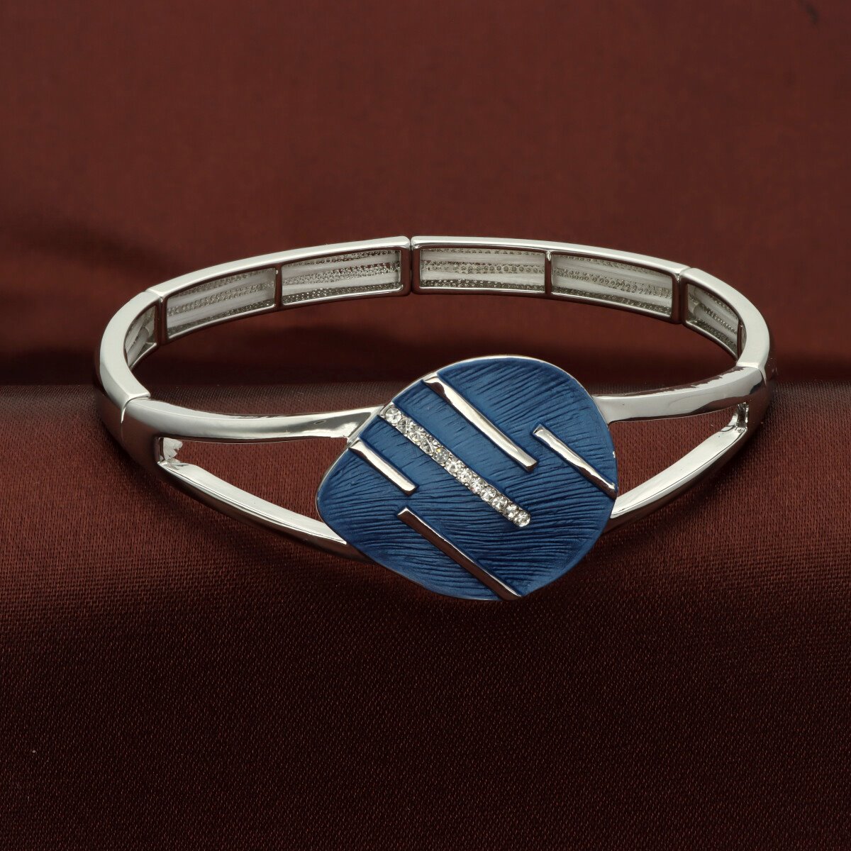 Elegancka bransoletka wykonana z metalu antyalergicznego i emalii. Rozmiar uniwersalny (na rozciągliwych gumkach). Szukaj do kompletu naszyjnika i kolczyków o tym samym indeksie numerycznym.