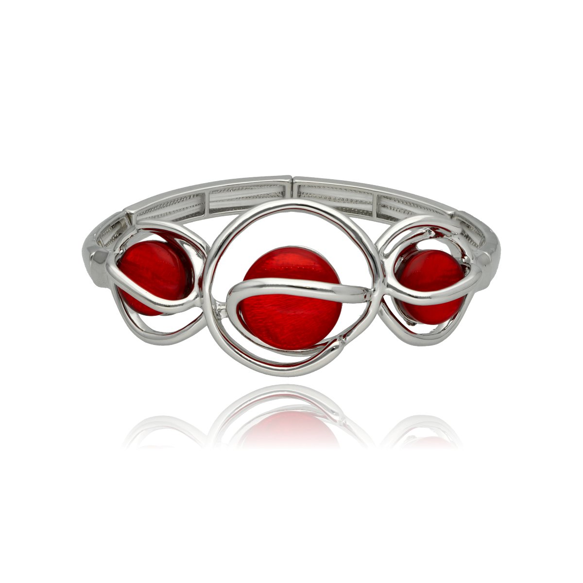 Elegancka bransoletka wykonana z metalu antyalergicznego i żywicy. Rozmiar uniwersalny (na rozciągliwych gumkach). Szukaj do kompletu naszyjnika i kolczyków o tym samym indeksie numerycznym.