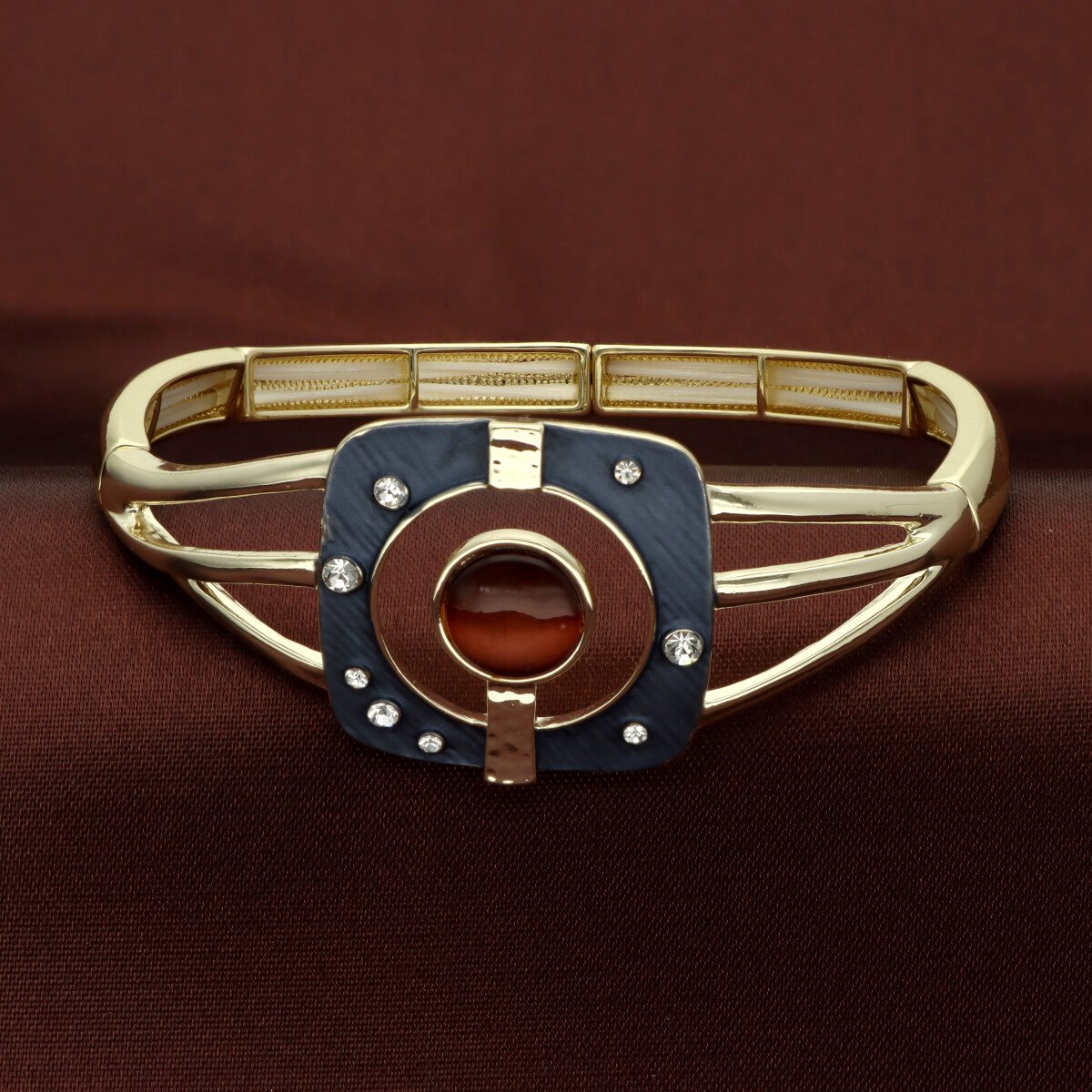 Elegancka bransoletka wykonana z metalu antyalergicznego, kwarcu i emalii. Rozmiar uniwersalny (na rozciągliwych gumkach). Szukaj do kompletu naszyjnika i kolczyków o tym samym indeksie numerycznym.